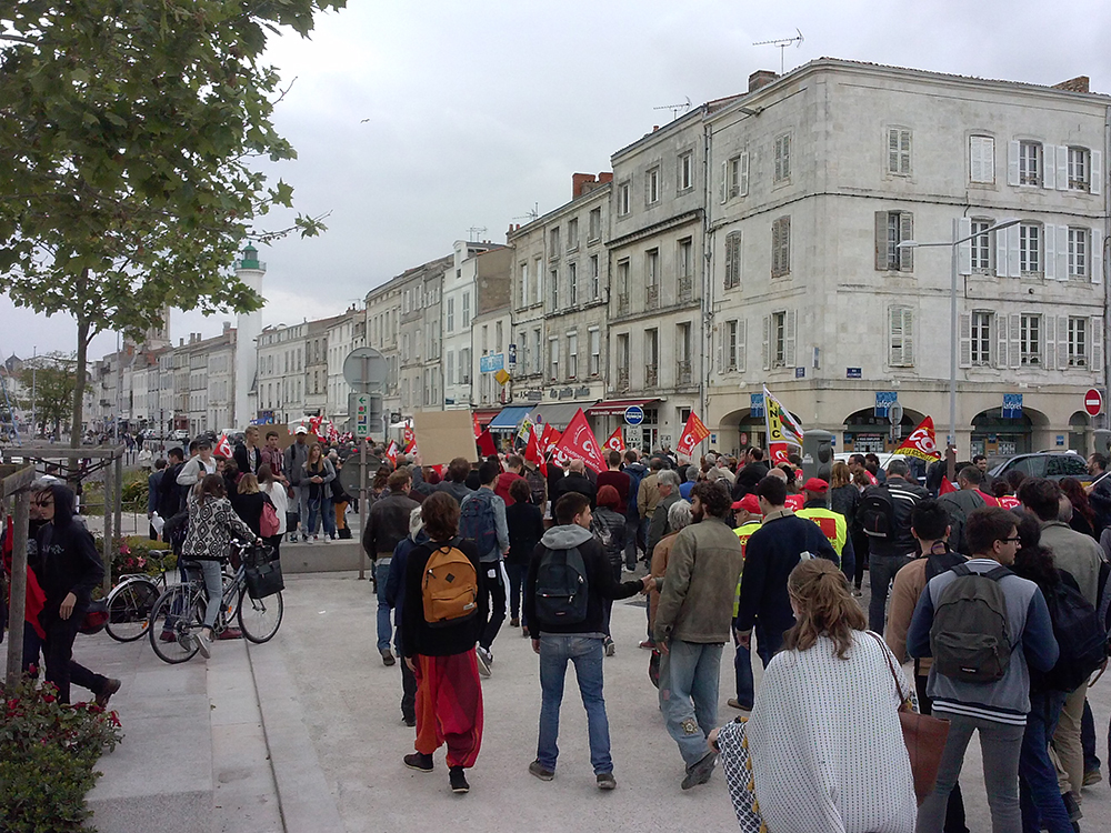 Le projet de loi travail adopté hier à l’Assemblée nationale, après le rejet par les députés de la motion de censure. La mobilisation dans la rue ne s’est pas fait attendre, marquée par de violents incidents dans plusieurs villes de France : à Paris, Rennes et au Havre. 55 000 personnes ont manifesté dans tout le Pays. Ils étaient moins d’un millier en Charente-Maritime. 200 en fin d’après-midi à Saintes. Et entre 600 et 800 à La Rochelle. Là, la mobilisation pour le retrait de la loi Travail a commencé vers midi avec le blocage pendant quelques minutes de la rocade par des lycéens. Puis, ils ont rejoint la manifestation syndicale place de la Motte rouge qui s’est dirigée vers le Vieux port. Ecoutez ces quelques réactions d’opposants à la loi El Khomri et au recours du 49-3 par le Premier Ministre :