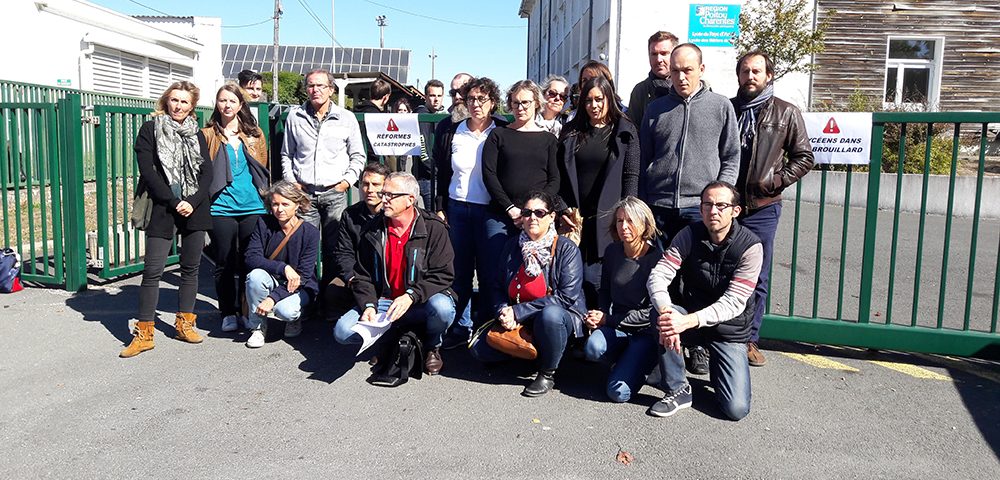 Une trentaine de profs du Lycée du Pays d’Aunis de Surgères se sont mobilisés ce midi. Rassemblés devant les grilles de leur établissement, ils entendaient protester contre la réforme de l’enseignement professionnel qui prévoit de réduire les temps de formation. 11 semaines de cours en moins pour les élèves de Bac pro et 4 à 6 semaines pour ceux de CAP. Le vote est prévu le 3 octobre pour une application dès la rentrée 2019. Marc Havard est professeur de mathématiques et physique. Il ne comprend pas de telles mesures :