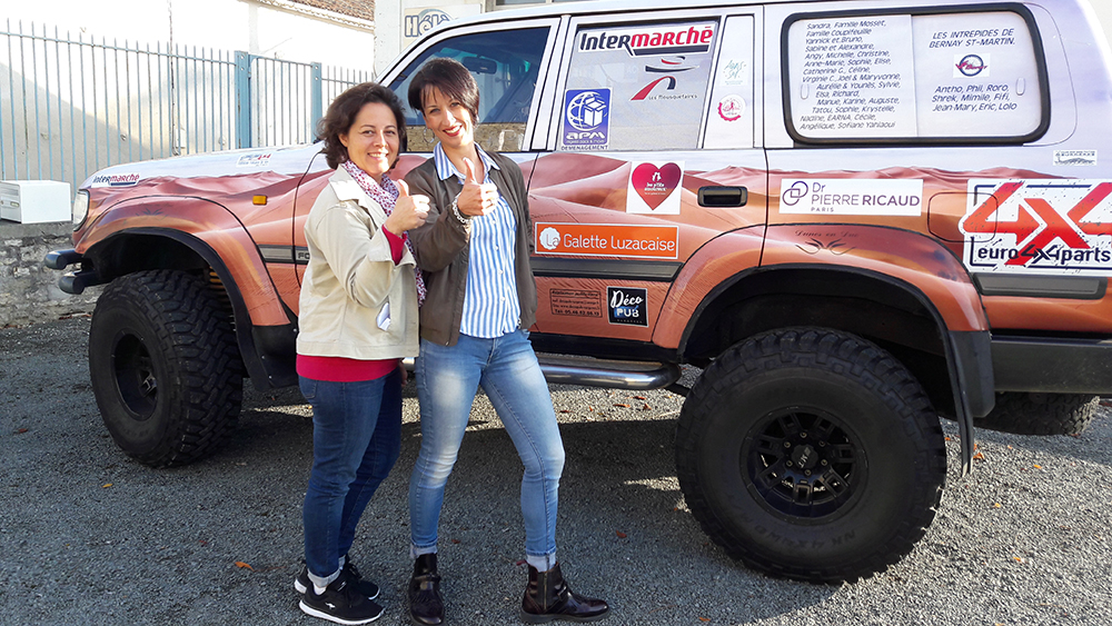 Deux femmes de choc partiront demain matin de Surgères direction le Maroc. Elles participent au Trophée Roses des sables. Un rallye raid 100% féminin dans le désert marocain, qui va se dérouler du 10 au 21 octobre. L’équipage, baptisé Dunes en duo, est composé d’une pilote Catherine Schmitt, une Parisienne de 46 ans, et de sa navigatrice Tatiana Audouin, 42 ans, chef d’entreprise à Surgères. A bord de leur 4X4 aux dimensions monstrueuses, elles vont vivre une aventure solidaire et humanitaire à peine croyable. Et elle sont prêtes. On écoute Tatiana et Catherine :