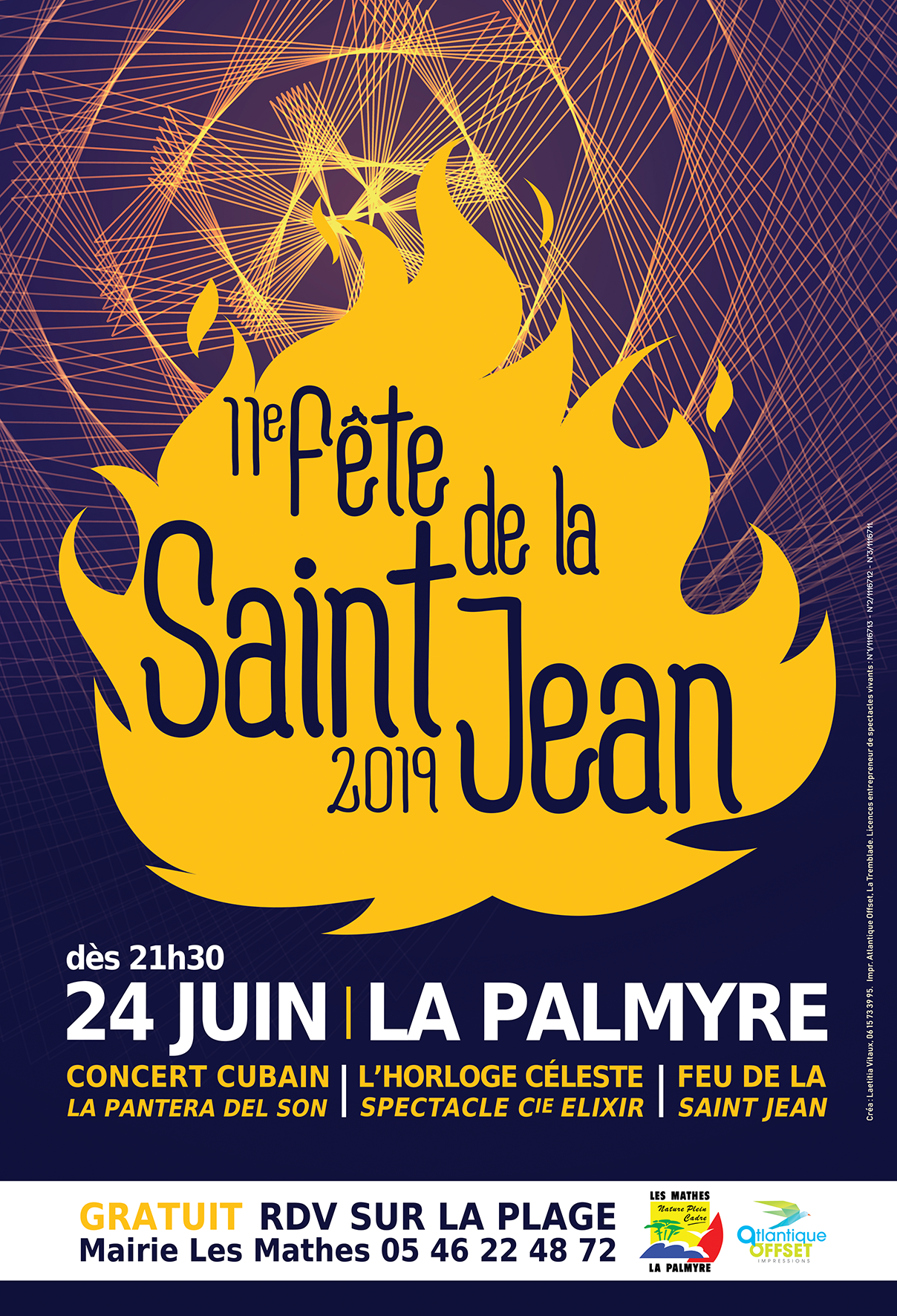 La mairie des Mathes-La Palmyre célèbre la Fête de la Saint-Jean ce soir. Dès 21h30, la municipalité propose une soirée avec un concert de musique cubaine, suivi du spectacle de la Cie Elixir « L’horloge céleste », avant un grand brasier. Rendez-vous sur la plage de La Palmyre.