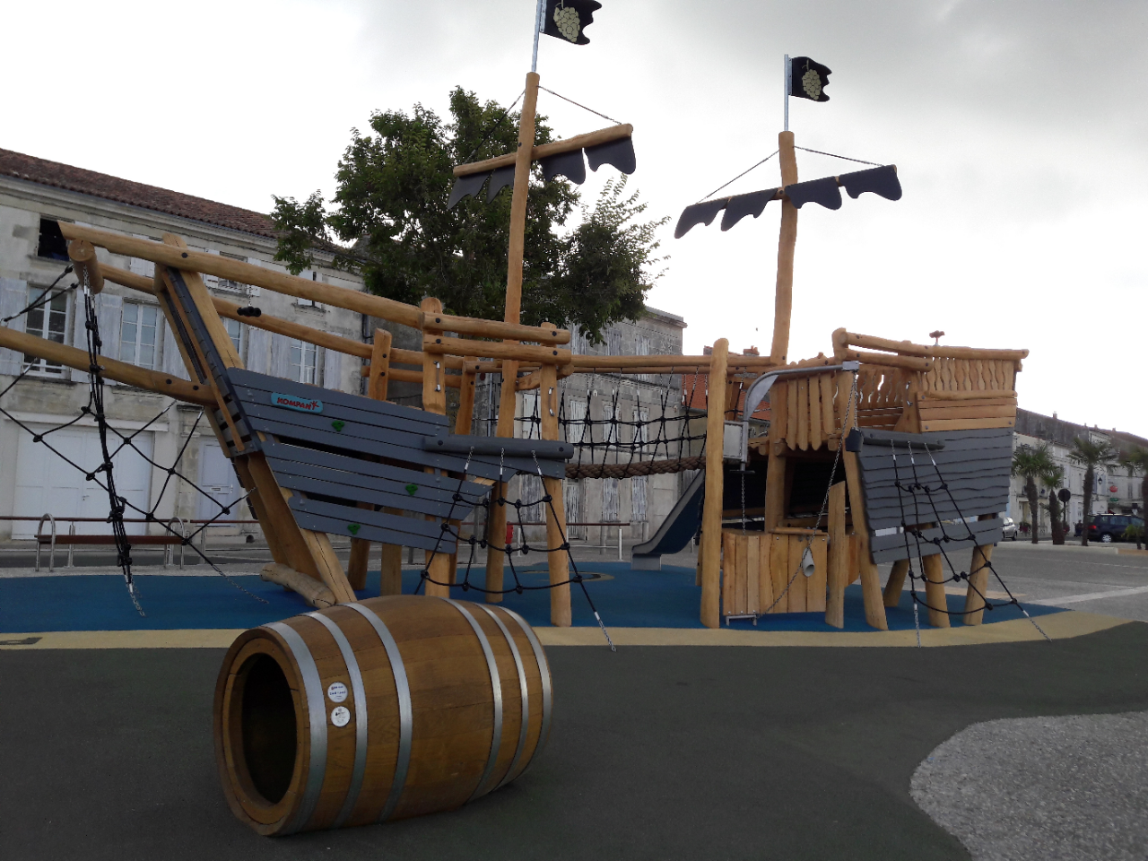 « La Ville retrouve son fleuve ». C’est ainsi que la municipalité présente les premiers aménagements réalisés sur le quai Libération. En 2017, elle lançait une démarche de redynamisation du site dans le but d’augmenter son attractivité. Désormais, cette reconquête des bords de Charente s’appuie, je cite, « sur la mise en place d’actions concrètes ». Il y a eu d’abord l’an dernier la création d’une aire de camping-car. Et puis cette année la réalisation d’un terrain de pétanque et d’un espace scénique pour accueillir des concerts et des spectacles, juste à côté d’un food-truck qui sera présent pendant toute la période estivale. Le projet le plus ambitieux, c’est l’aménagement d’une aire de jeux dédiée aux enfants de 3 à 12 ans. Un nouvel espace articulé autour d’une gabarre, symbole du passé fluvial de la cité tonnacquoise, puisque cette embarcation était destinée au transport de marchandises sur la Charente comme le sel, l’eau-de-vie ou le bois. Il est doté d’un parcours multi-activités et de jeux récréatifs, qui sont également accessibles aux enfants en situation de handicap. La structure réalisée sur mesure s’inscrit pleinement dans les exigences du périmètre de protection du pont suspendu classé monument historique, et du label Grand site de France auquel postule le territoire.