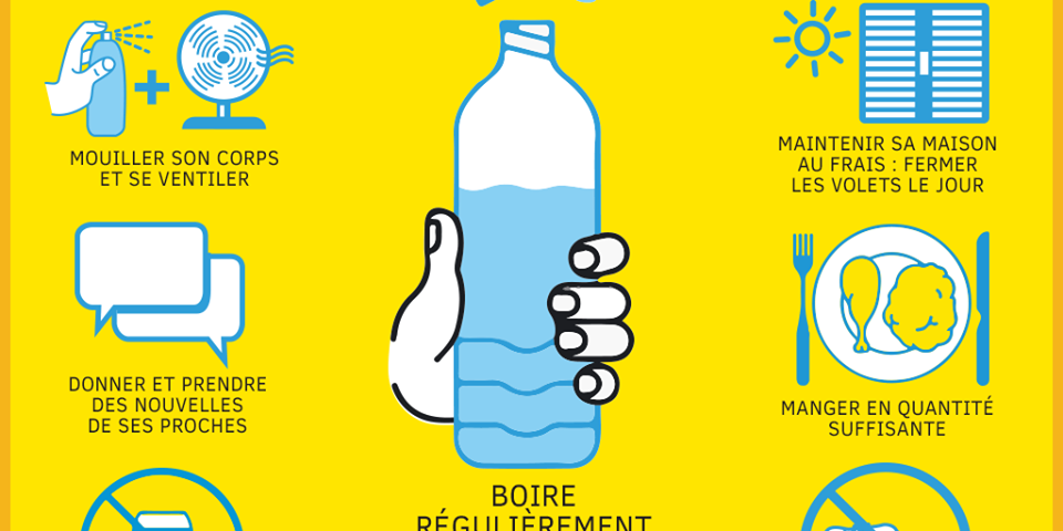 > Si vous avez des personnes âgées, souffrant de maladies chroniques ou isolées dans votre entourage, prenez de leurs nouvelles ou rendez leur visite deux fois par jour. Accompagnez les dans un endroit frais.
