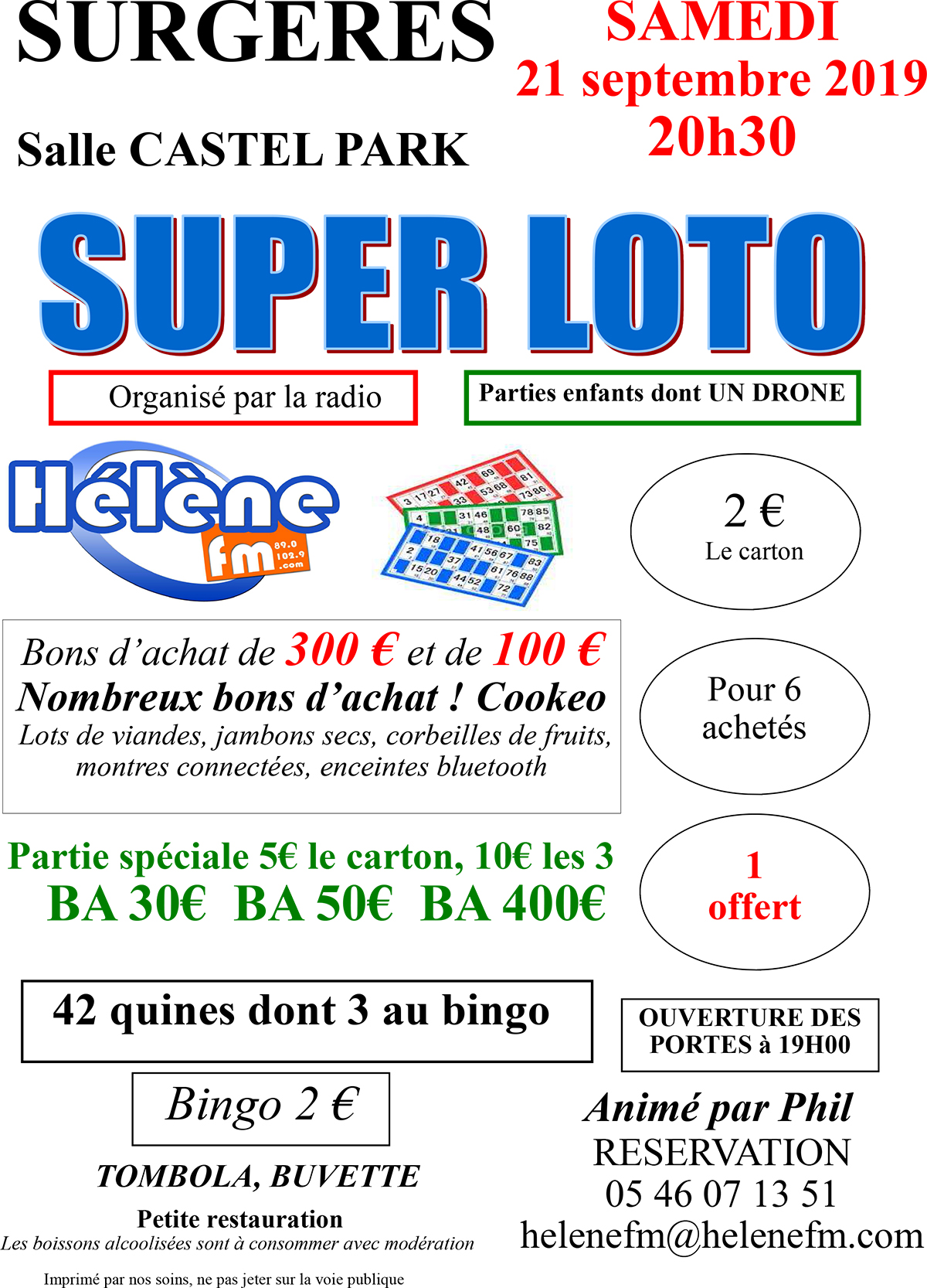 LOTO HELENE FM – SAMEDI 21 SEPTEMBRE – SURGERES