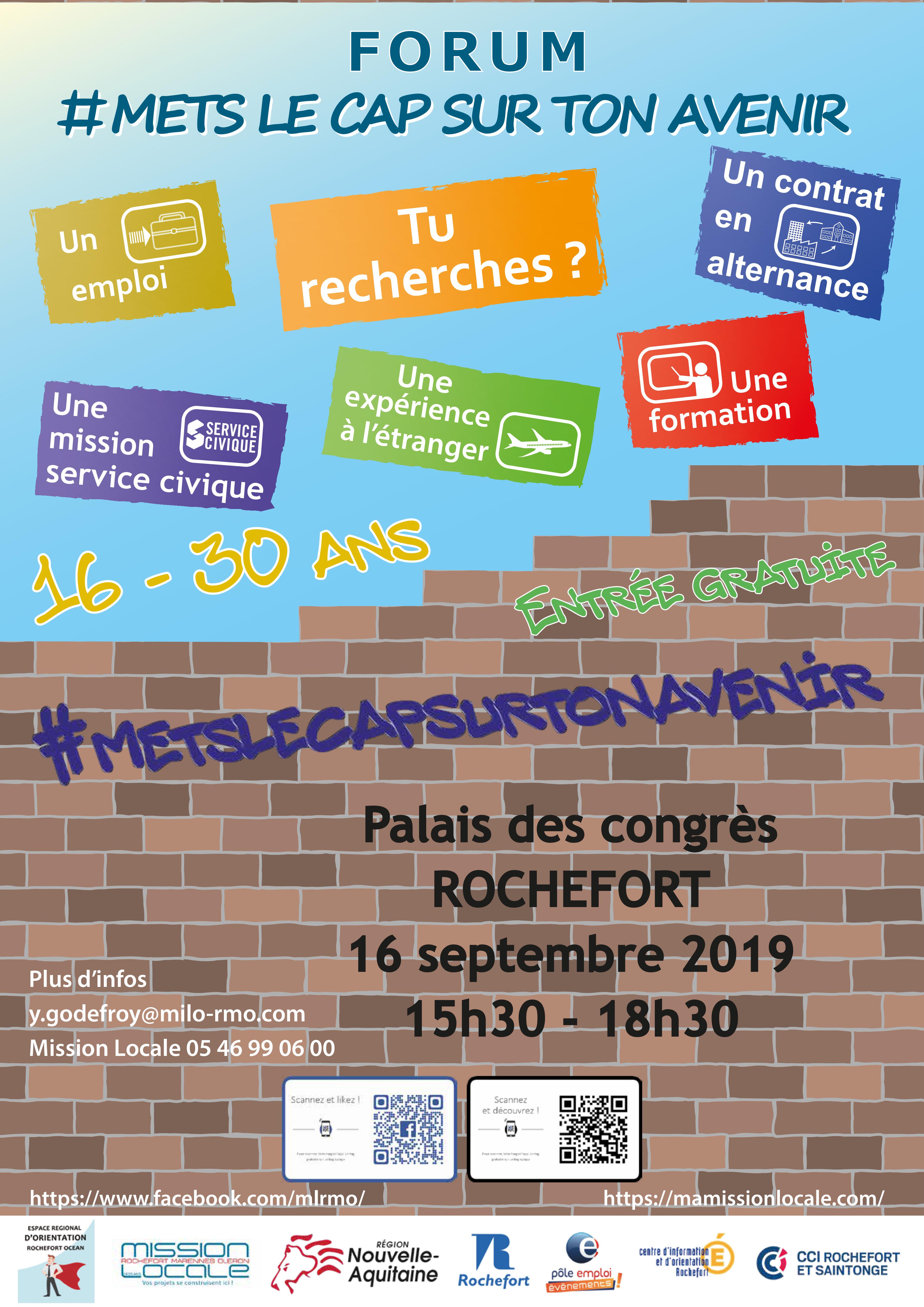 Le rendez-vous est donné de 15h30 à 18h30 au Palais des congrès de Rochefort. Il faut prévoir plusieurs CV. A noter que les jeunes de Marennes peuvent bénéficier d’une navette gratuite pour s’y rendre. Il faut réserver au 05 79 86 01 50.