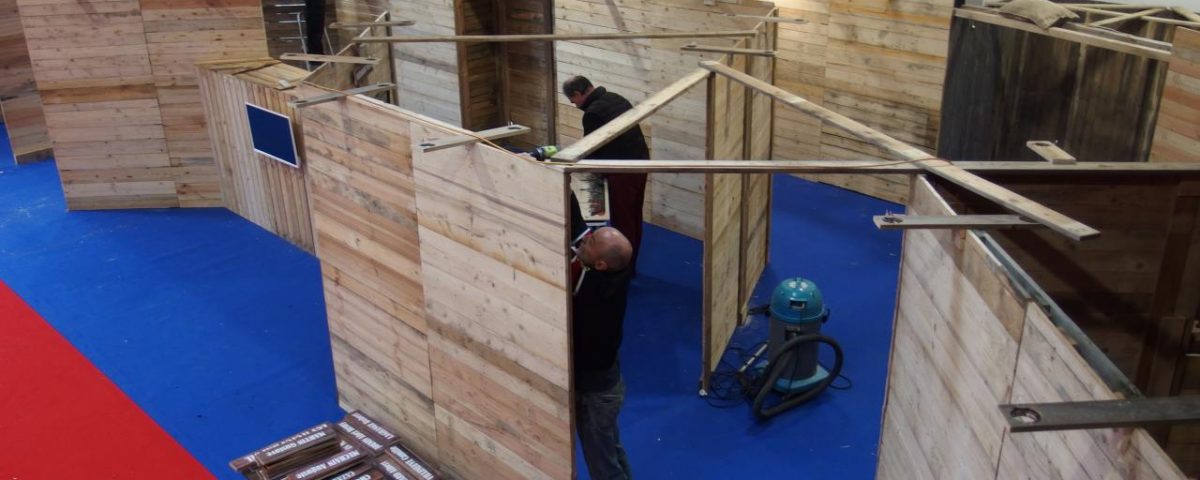 Lors du montage de l’exposition symbolisant des tranchées.