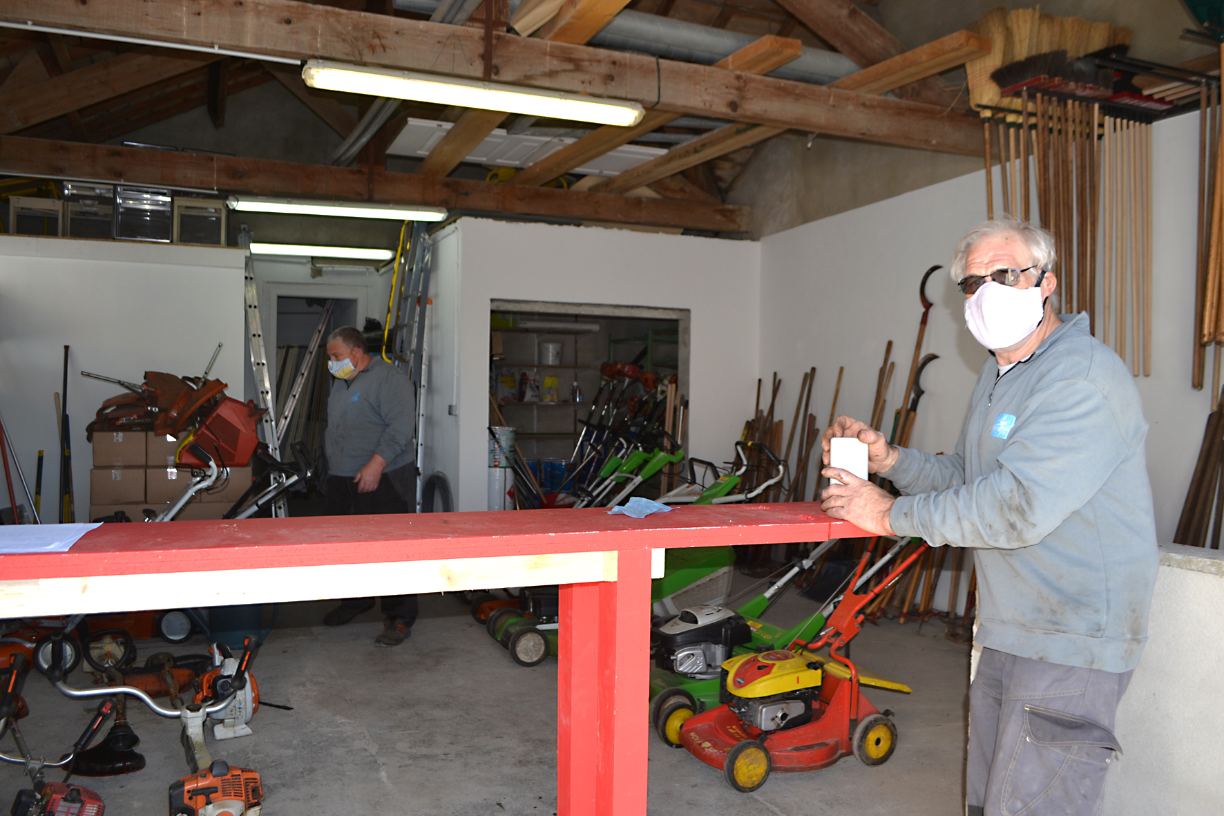 Si la Ville est en mode veille, les agents municipaux restent mobilisés et actifs sur le terrain. La crise sanitaire oblige les services techniques à redoubler de vigilance. L’hygiène et la salubrité publique n’étant pas à négliger, les équipes se sont réorganisées pour pouvoir continuer à travailler. Si elles fonctionnaient habituellement en binôme, depuis plus d’un mois, les agents œuvrent en solo. Mesures de distanciation obligent. Ils ne sont désormais plus qu’une dizaine à pointer tous les matins au centre technique. Sur la base du volontariat, ils ont été affectés pour certains à des tâches inhabituelles. Ils sont par exemple réquisitionnés sur les marchés ou à la maison de retraite pour faire respecter les mesures barrières. Les autres interviennent sur le terrain pour assurer la propreté urbaine et la maintenance des équipements communaux, à savoir l’entretien des bâtiments, des abords des routes, et des espaces naturels et végétalisés. Et même si la fréquentation a diminué, la voirie nécessite aussi un entretien régulier. La tonte des espaces verts se poursuit également, ainsi que le travail dans les serres municipales.