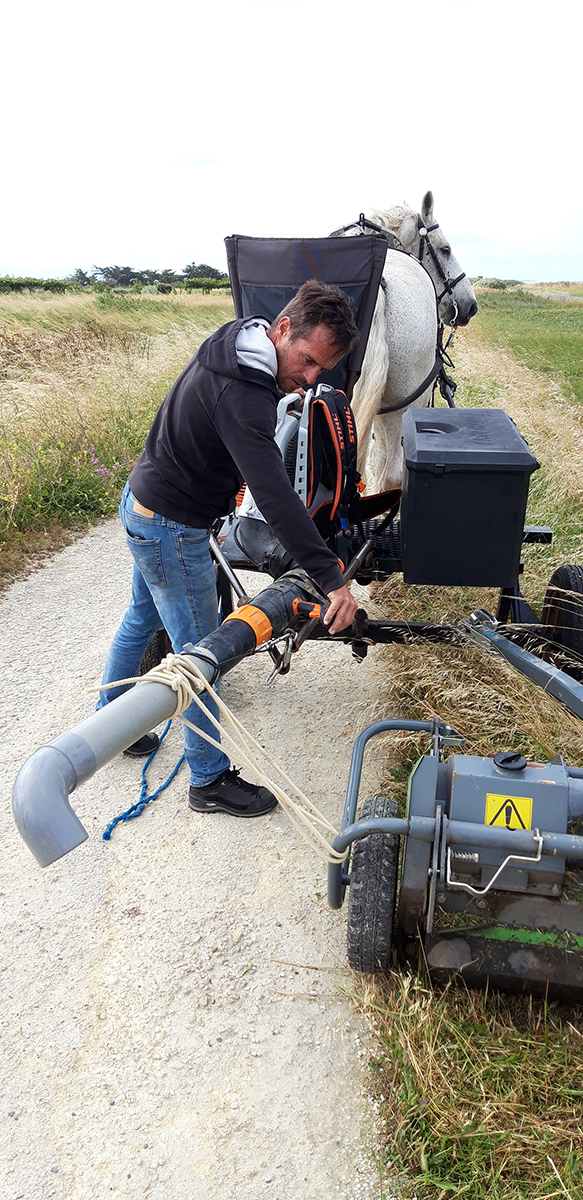 Avec ses 147 km de pistes, Oléron est aujourd’hui la première île cyclable de France ! Un tel réseau nécessite un entretien de tous les instants. Et la traction équine se révèle être la solution d’avenir bien qu’ancestrale. Sébastien Desenne :