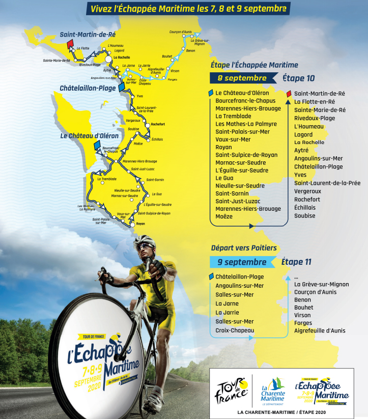 J-1 avant une étape inédite du Tour de France en Charente-Maritime. Inédite à plus d’un titre, car elle va relier les deux plus grandes îles du département : Oléron et Ré. Emprunter les quatre viaducs qui seront fermés pour l’occasion. C’est la première fois que l’île de Ré accueille une étape du Tour. Et Oléron, la seconde fois depuis 1983. Du jamais vu donc. Ce qui promet d’être un évènement pour Michel Parent, maire de la ville de départ du Château-d’Oléron :