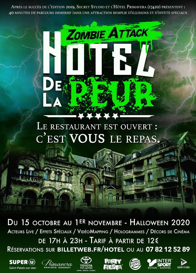 Prêts pour le grand frisson à Saint-Palais-sur-Mer ! Pour Halloween et pendant les vacances de la Toussaint, le prestigieux hôtel Primavera devient l’Hôtel de la peur. Une attraction unique en Charente-Maritime pour une expérience 100% immersive. Une création originale signée Secret studio. Une start-up spécialisée dans l’évènementiel et les effets spéciaux qui a imaginé un scenario de toutes pièces, et on ne peut plus d’actualité. On écoute son créateur Olivier Pesch :
