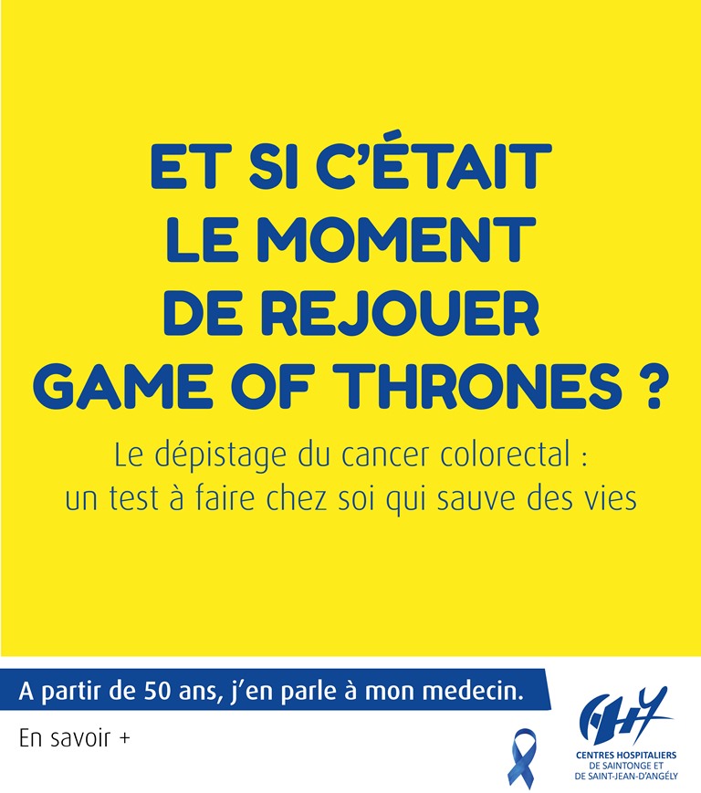 L’opération Mars bleu débarque en Charente-Maritime. A l’occasion du mois de campagne pour le dépistage du cancer colorectal, les centres hospitaliers de Saintes et Saint-Jean-d’Angély lancent une nouvelle campagne de communication. A travers la création d’affiches et la mise à disposition de kits de dépistage, les deux établissements souhaitent sensibiliser le public et mettre en garde contre l’un des cancers les plus meurtriers en France. Et pourtant, s’il est diagnostiqué à temps, il se guérit dans la plupart des cas. Lucie Alix :