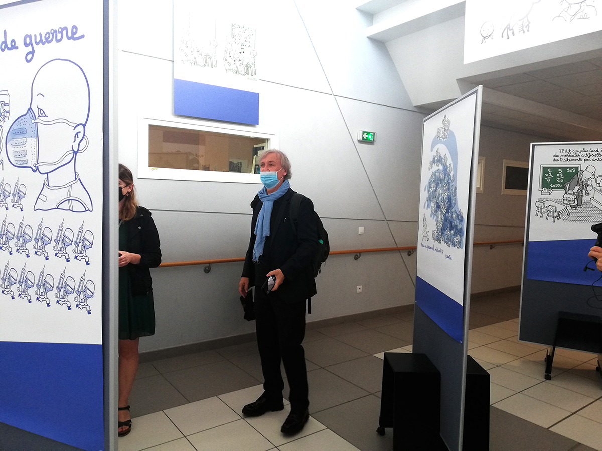 Le dessinateur du journal Le Monde est allé à leur rencontre hier matin, à l’occasion de l’inauguration d’une exposition d’une trentaine de ses dessins sur la centaine qu’il a offerte à l’établissement. L’artiste a souhaité faire part de sa reconnaissance envers tous ces professionnels qui luttent encore contre la pandémie de covid-19. Il nous raconte comment sont nées ses œuvres :