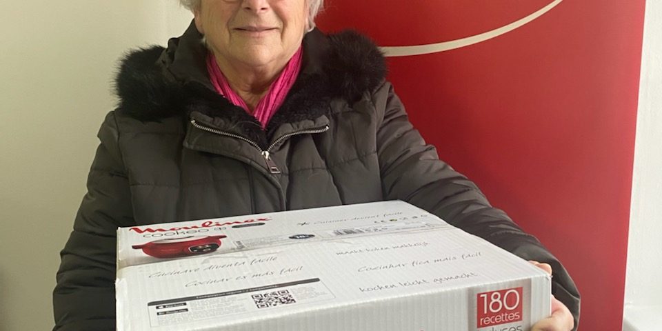 Louisette est venue au studio de VOGUE RADIO à Marennes pour récupérer le Cookéo+, offert par Galinat Surgères, qu’elle a remporté lors du LOTORADIO du 15 janvier dernier. Félicitations !
