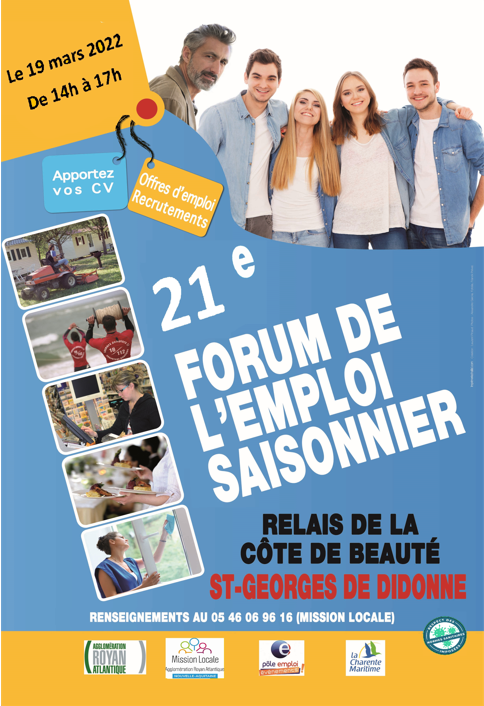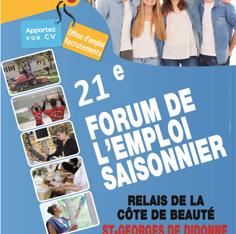 La Communauté d’agglomération Royan Atlantique organise demain son 21e Forum de l’emploi saisonnier à Saint-Georges-de-Didonne. Des centaines d’offres sont à pourvoir dans l’hôtellerie, la restauration ou l’animation. Des recruteurs seront présents sur place. Rendez-vous de 14h à 17h au Relais de la Côte de beauté.