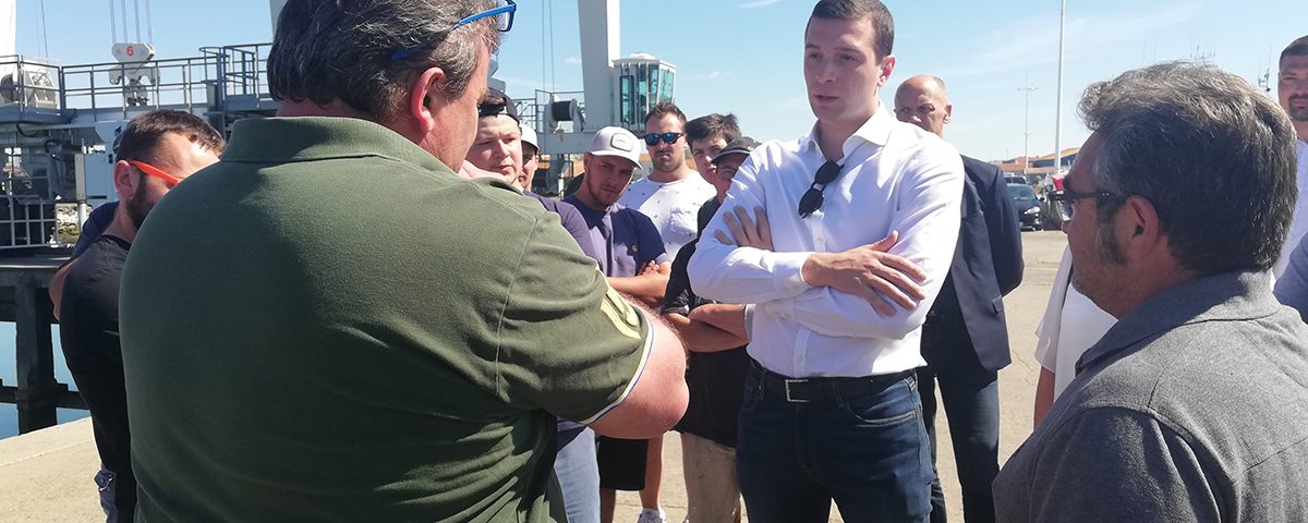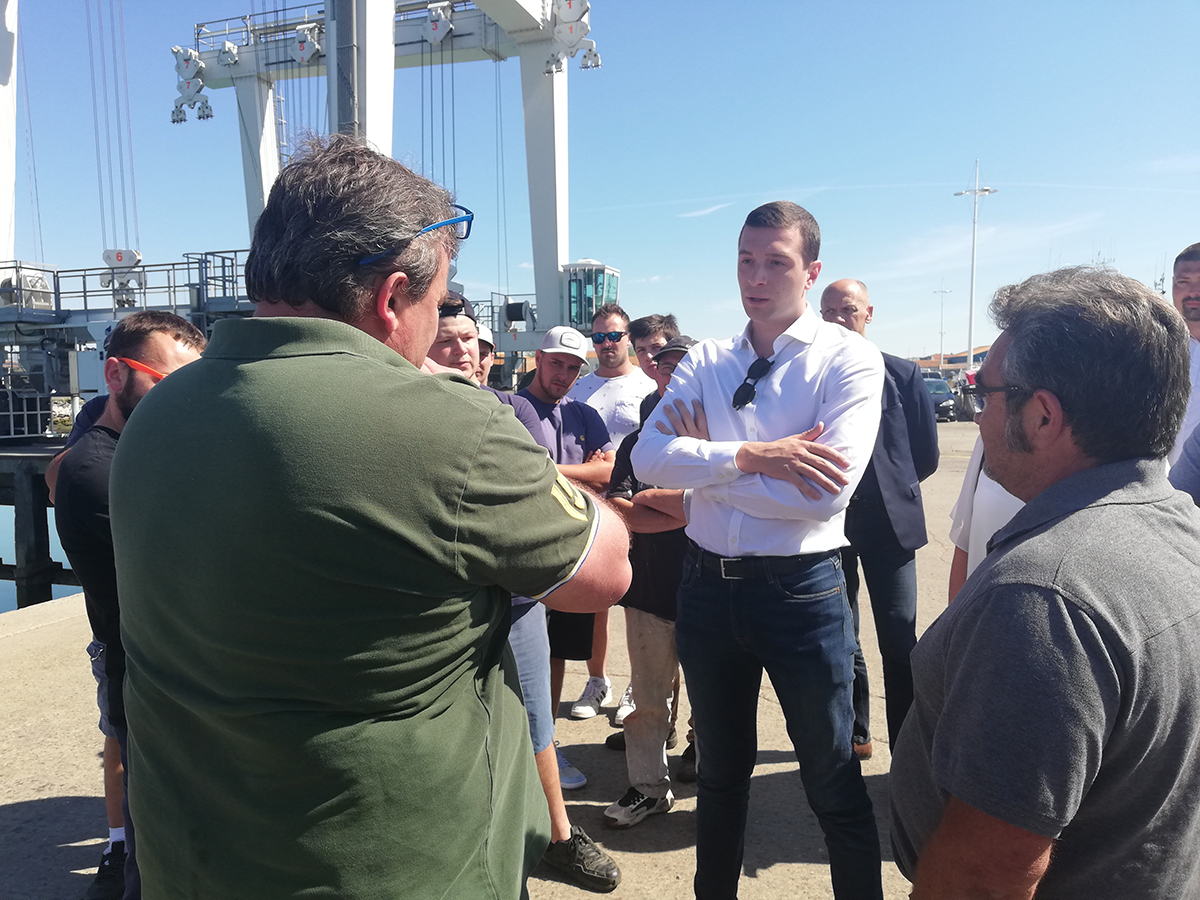 Jordan Bardella a rencontré des pêcheurs oléronais au port de La Cotinière.