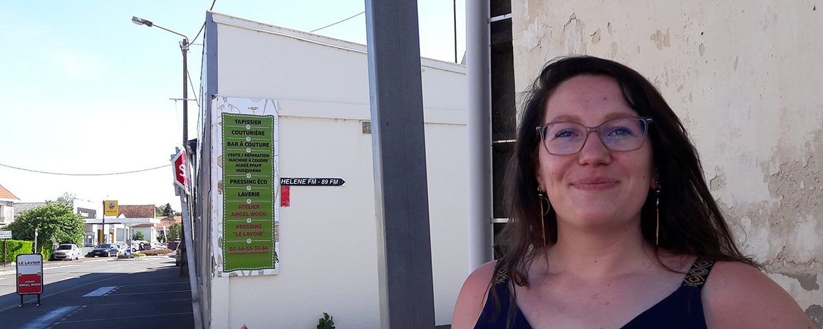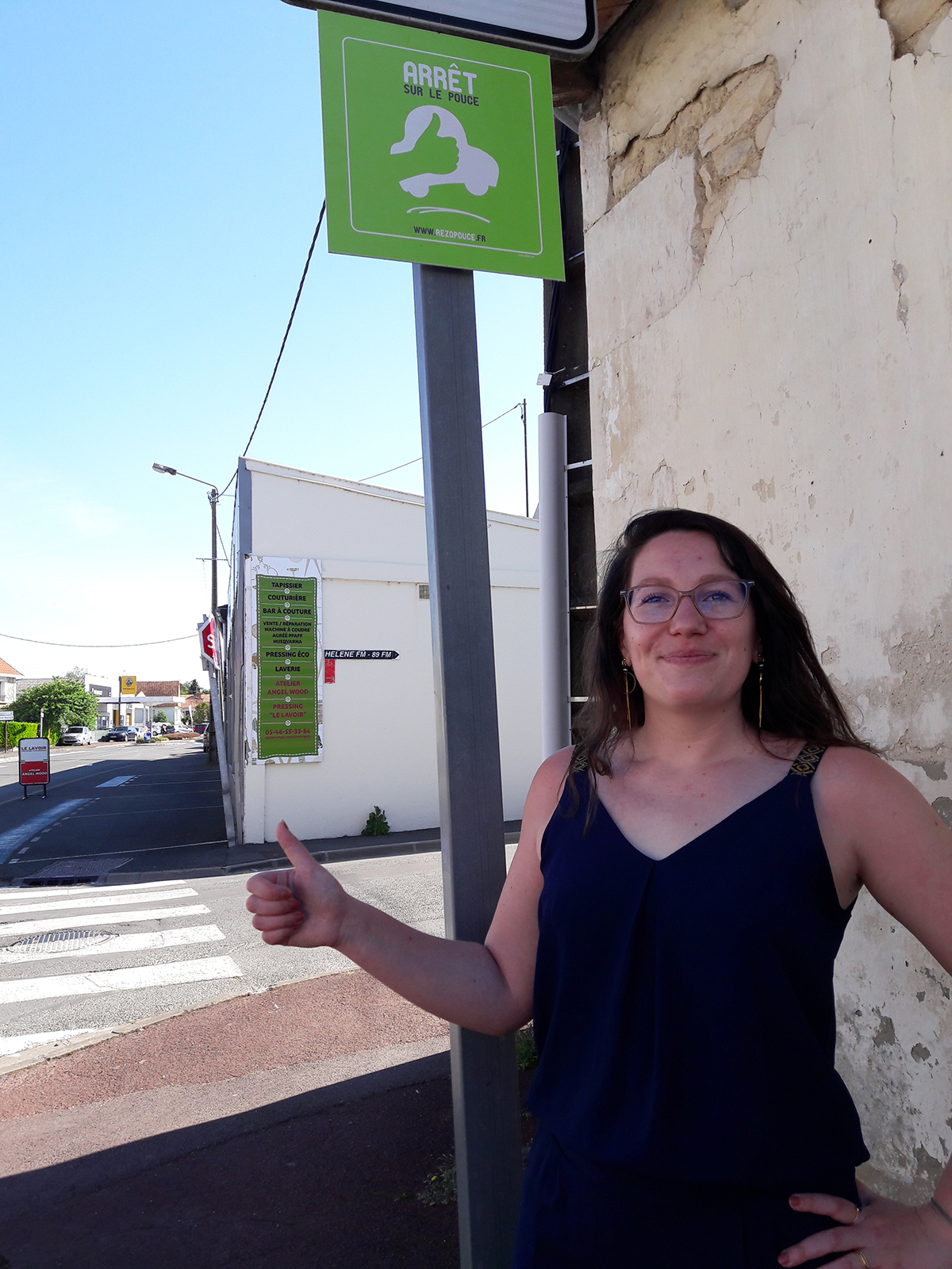 Marine Lardière devant l’un des arrêts du Rézo pouce à Surgères.