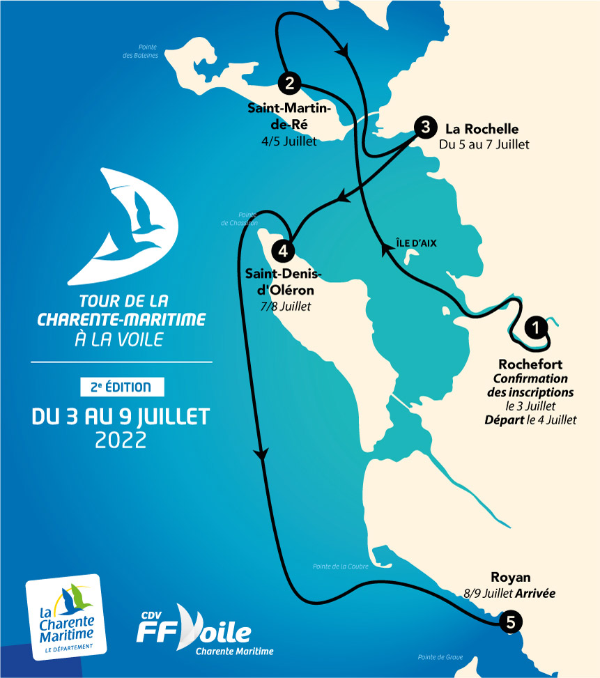 C’est la 2e édition cette année. 60 bateaux sont attendus sur la ligne de départ à Rochefort pour rallier Royan en un peu moins d’une semaine. Arrivée prévue samedi, après plusieurs étapes à Saint-Martin-de-Ré, La Rochelle et Saint-Denis-D’Oléron. Des animations nautiques sont prévues lors de chaque escale.