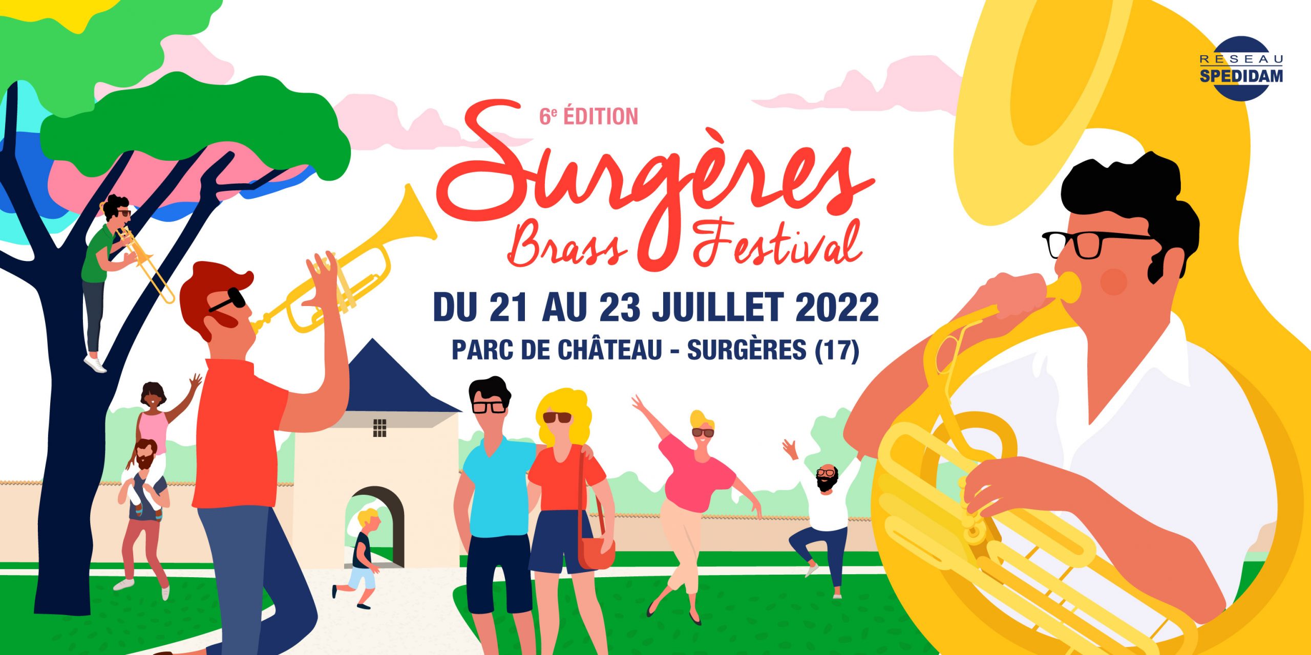 Les concerts gratuits débutent à 17h30 sur la scène du jardin. Les spectacles payants commencent à 20h30 sur la scène du parc, dans l’enceinte du château de Surgères. Des animations sont proposées en marge du festival avec notamment de l’initiation aux cuivres et des rencontres avec des facteurs d’instruments.