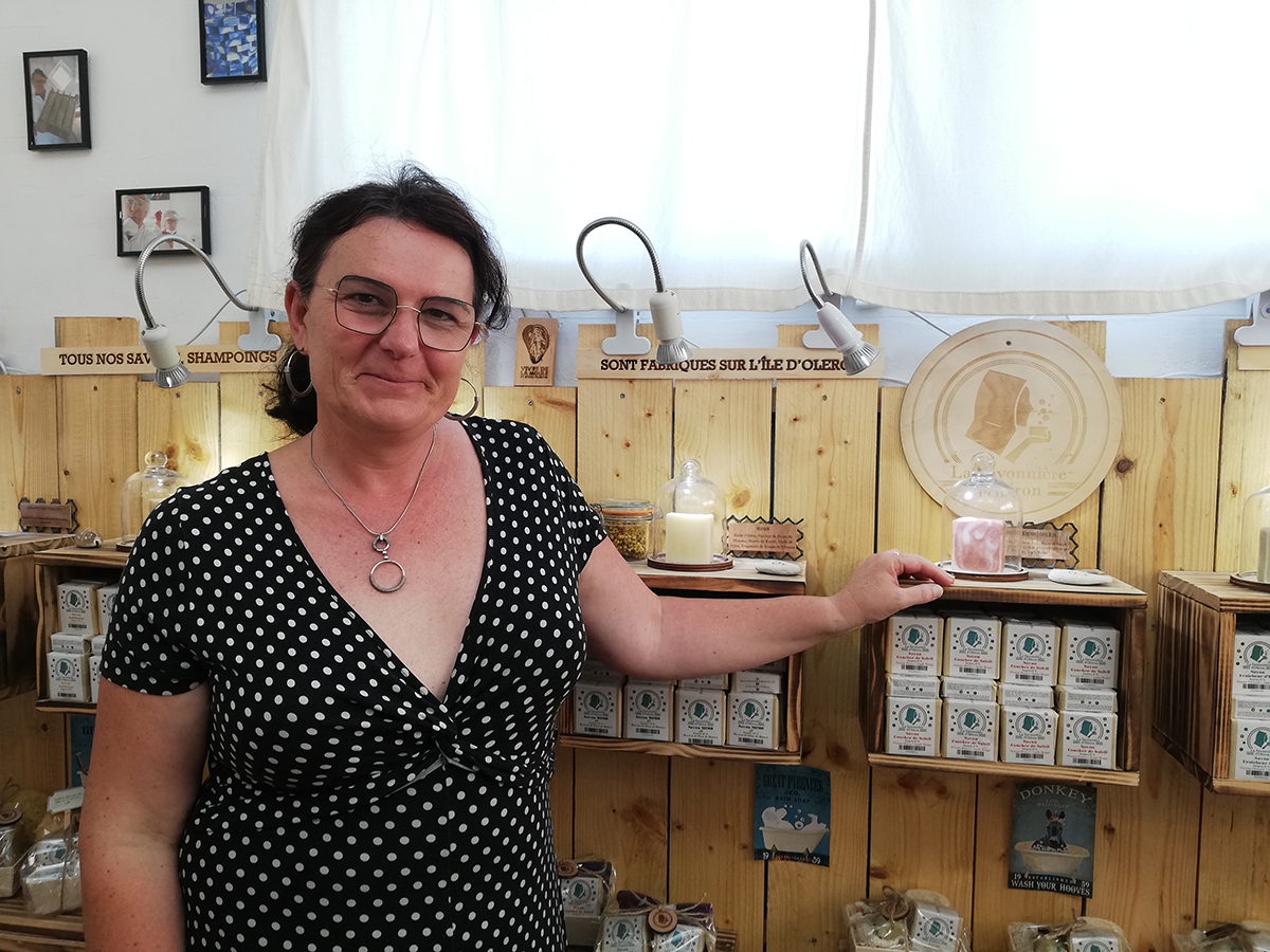 Suite de notre série de reportages sur les artisanes créatrices de l’île d’Oléron. Rencontre avec Carole Coupey, la fondatrice de la marque La Savonnière d’Oléron. Après une carrière dans la grande distribution, cette Oléronaise a choisi de se reconvertir en suivant une formation chez un maître savonnier. Installée depuis 2018 sur le port ostréicole de La Baudissière à Dolus, elle utilise la méthode de la saponification à froid. Son mari est également de la partie avec une autre boutique de la marque sur le port de Saint-Trojan-Les-Bains. Leurs produits sont composés essentiellement de matières premières biologiques, de beurre de karité, d’huiles végétales, d’argile, mais aussi de certaines ressources naturelles présentes localement, comme le souligne Carole Coupey :