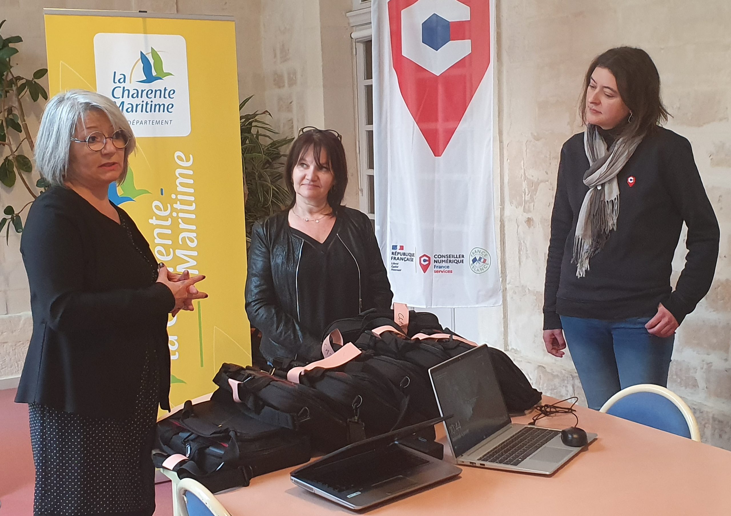 Le CCAS de Rochefort a reçu hier matin un don du Département de la Charente-Maritime de sept ordinateurs portables reconditionnés. Une aubaine pour le Centre communal d’action sociale qui va pouvoir ainsi mettre en place des ateliers d’apprentissage, dans le cadre de ses missions en faveur de l’inclusion numérique. Alors que la totalité des foyers du département seront bientôt connectés à la fibre, et que l’usage des équipements numériques tend à devenir la norme, cette aide est particulièrement bienvenue, comme le souligne Sandra Rondet, directrice du CCAS de Rochefort :