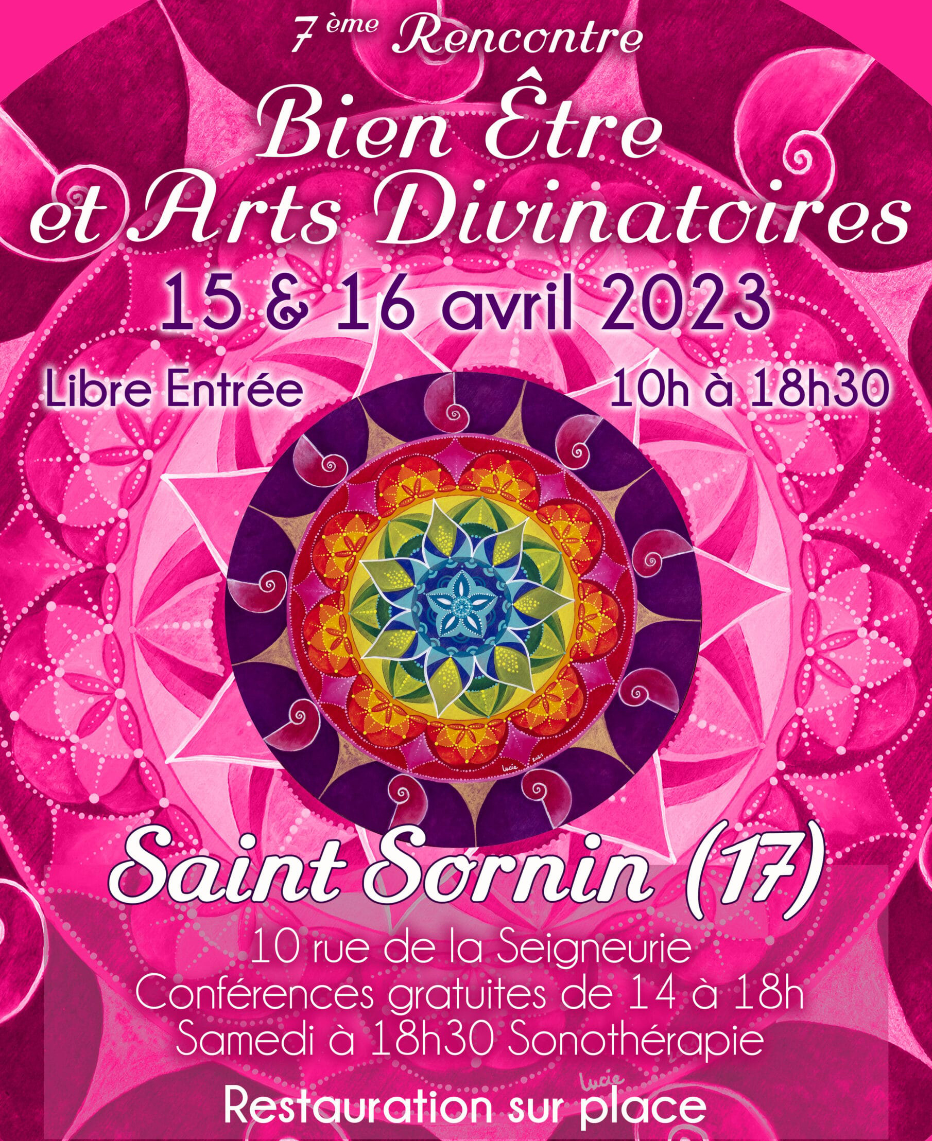 L’association Saint-Sornin Accueille vous donne rendez-vous le samedi 15 et dimanche 16 avril pour sa 7ème rencontre bien-être et arts divinatoires à la salle des fêtes de Saint-Sornin, 10 rue de la Seigneurie. Une occasion idéale de découvrir une trentaine d’intervenants. Des conférences sur ces deux mondes seront proposées au cours du week-end, à partir de 14h. Samedi à 18h30, Instant découverte sono-thérapie. Sur place : restauration rapide. Accès libre de 10h à 18h. Plus d’infos au 06 86 73 17 28.