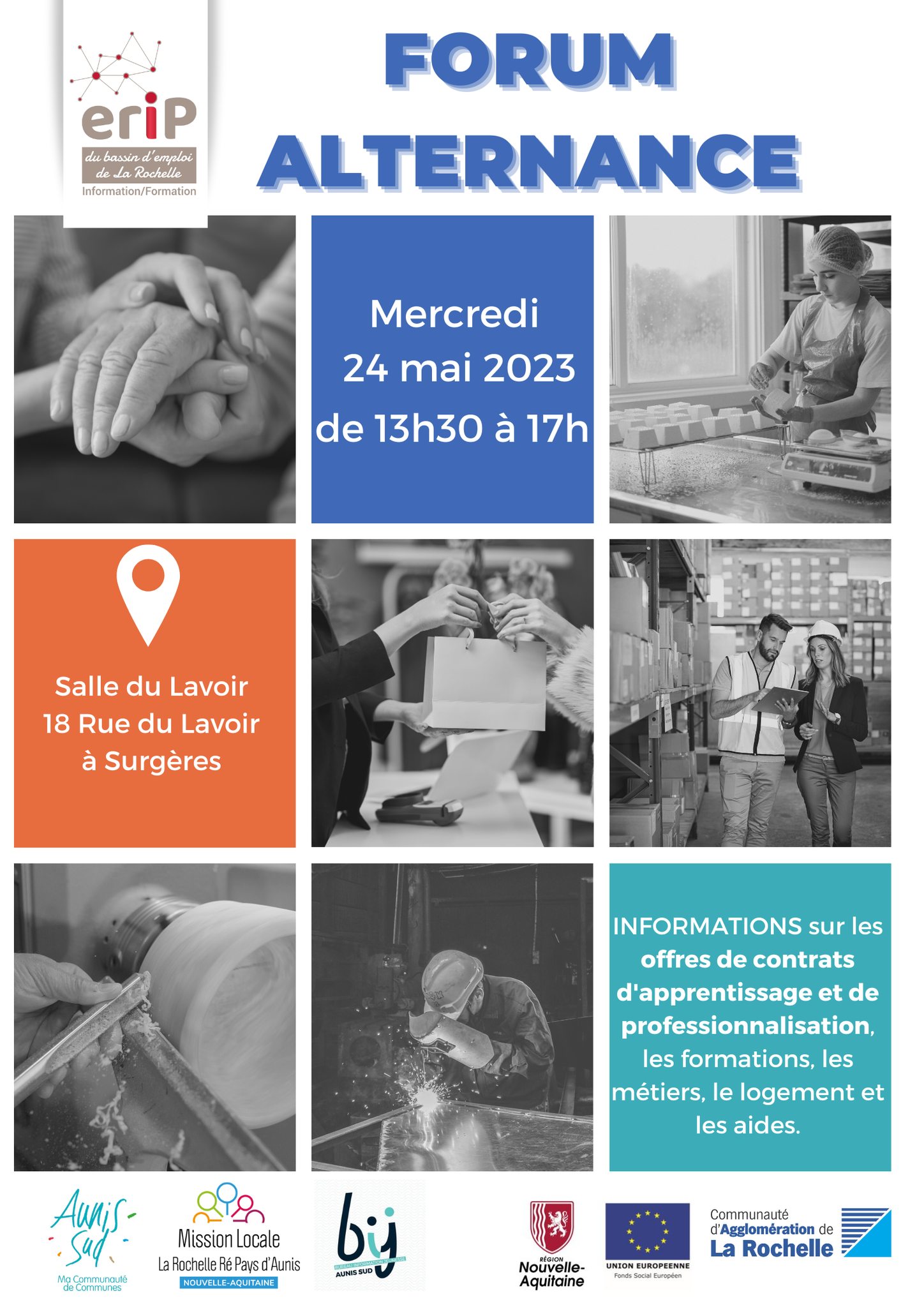 Plus d’une centaine d’offres de contrats d’apprentissage et de professionnalisation à pourvoir cet après-midi au Forum de l’alternance à Surgères. C’est la première édition. L’objectif est de faire se rencontrer des jeunes de 15 ans et plus avec des recruteurs du territoire et des organismes de formation. Présentation avec Gaëlle Fontaine, chargée de mission Emploi et formation à la Communauté de communes Aunis Sud qui propose ce forum :
