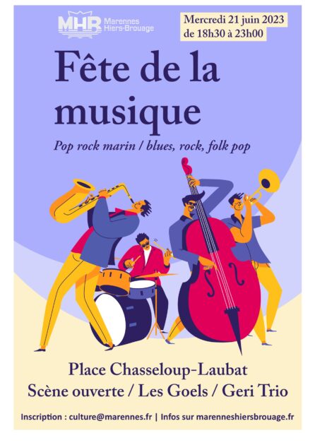 À Marennes, rendez-vous place Chasseloup-Laubat à 18h30 avec Goels et Geri Trio, suivi d’une scène ouverte de 18h30 à 20h.