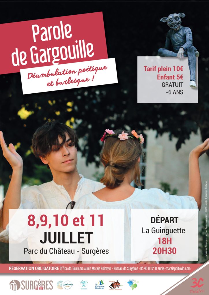 La Gargouille revient cet été à Surgères. Du 8 au 11 juillet, la Cie 3C théâtre propose de nouveau le spectacle « Parole de Gargouille », sous la forme d’une déambulation théâtrale dans le parc du château. Une déambulation qui sera poétique cette année, en raison du 10e anniversaire du label Ville en poésie. Une trentaine de comédiens proposeront une version revisitée du spectacle joué l’an dernier, avec toujours Agnès Brion à la mise en scène. Pierre-Jean Calmel, comédien et interprète de la Gargouille, nous en parle :