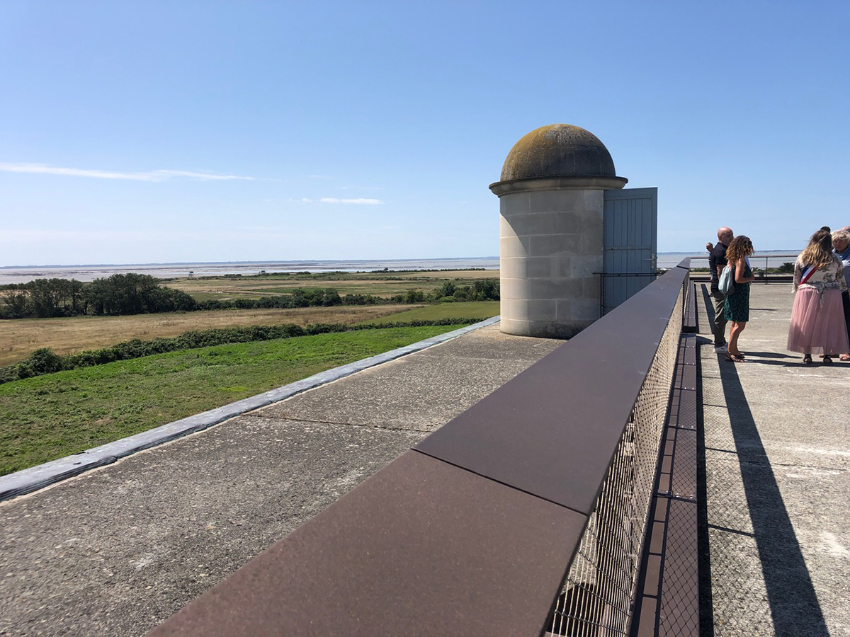 L’inauguration hier du belvédère du fort de l’île Madame à Port-des-Barques. Un nouveau spot à ne pas manquer cet été, qui offre un panorama et une vue imprenable sur l’estuaire charentais et les pertuis, et qui permet de comprendre le système militaire défensif de l’Arsenal de Rochefort. Construit au début du XVIIIe siècle, le fort de l’île Madame appartient depuis 1994 au Conservatoire du littoral qui a entrepris il y a huit mois d’importants travaux pour sécuriser l’accès et transformer le toit-terrasse en belvédère, comme l’explique Patrice Belz, délégué de rivages au Conservatoire du littoral :
