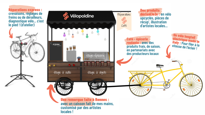 Vélopoldine, c’est le nom d’un tout nouveau service innovant de café-réparation vélo itinérant sur l’Aunis. À sa tête, Léopoldine Têtenoire. Une jeune Rochelaise de 28 ans, férue de petite reine et technicienne réparatrice de cycles, qui a eu l’idée de fabriquer une remorque toute équipée pour proposer ses services de réparation, des ateliers d’autoréparation, des produits dérivés et un café-épicerie. Elle nous en parle :