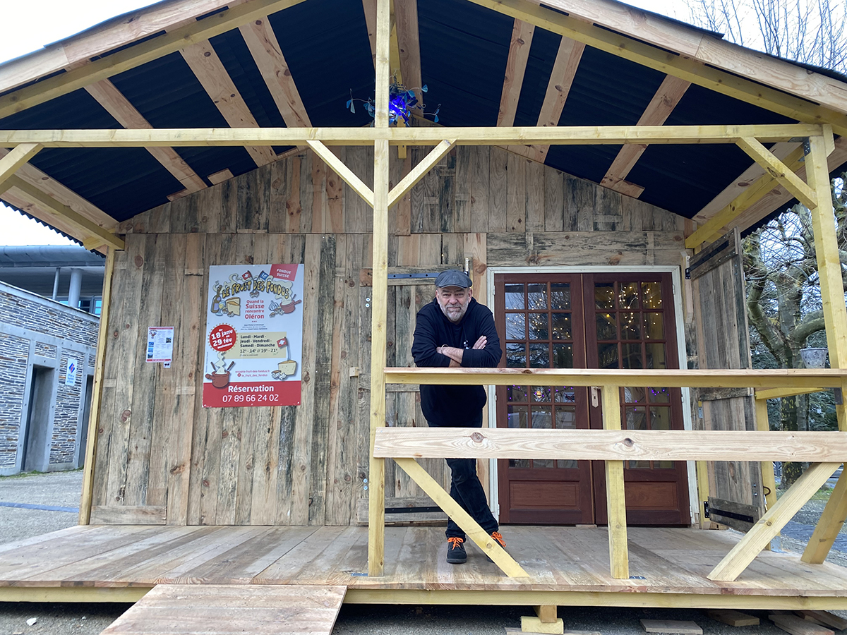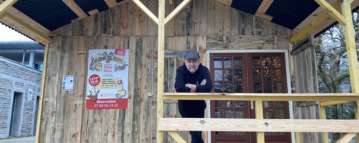 Rencontre avec l’Oléronais Jean-Michel Petit. Avec un ami Suisse prénommé Christoph, il a fondé Le Fruit des fondus. Un restaurant éphémère installé sur la place du marché au Château-d’Oléron, et aménagé comme un vrai chalet montagnard, avec son poêle à bois et son ambiance chaleureuse. Tous deux proposent uniquement de la fondue suisse. Jean-Michel Petit nous raconte comment est née cette idée :