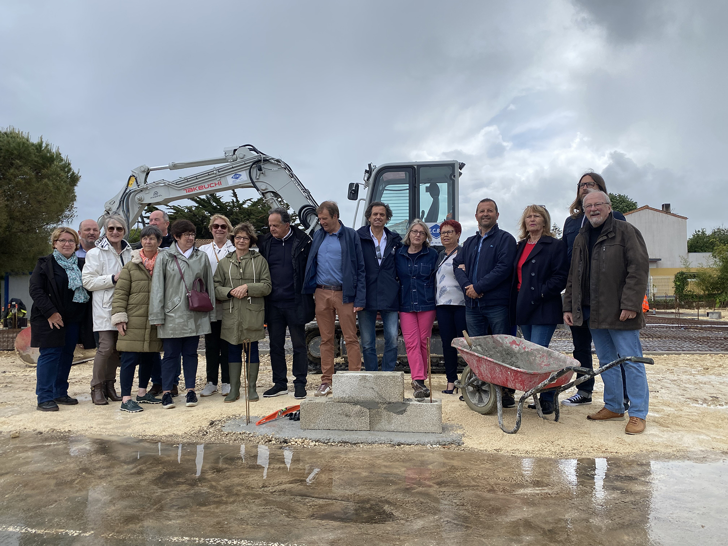 L’équipe municipale réunie pour la pose de la première pierre.
