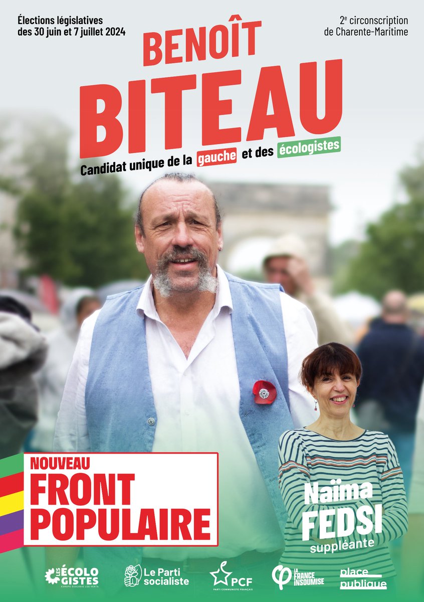 Zoom sur la 2e circonscription de la Charente-Maritime. Cinq candidats sont en lice pour le siège de député. Le maire Les Républicains de Rochefort Hervé Blanché, la députée sortante de la majorité présidentielle Anne-Laure Babault, Karen Bertholom du Rassemblement national, Frédéric Castello de Lutte ouvrière, et l’ex-eurodéputé écologiste Benoît Biteau qui vient de perdre son siège au Parlement européen. Ce dernier a été investi par le Nouveau front populaire pour proposer une alternative face à la montée de l’extrême droite et à la majorité en place :