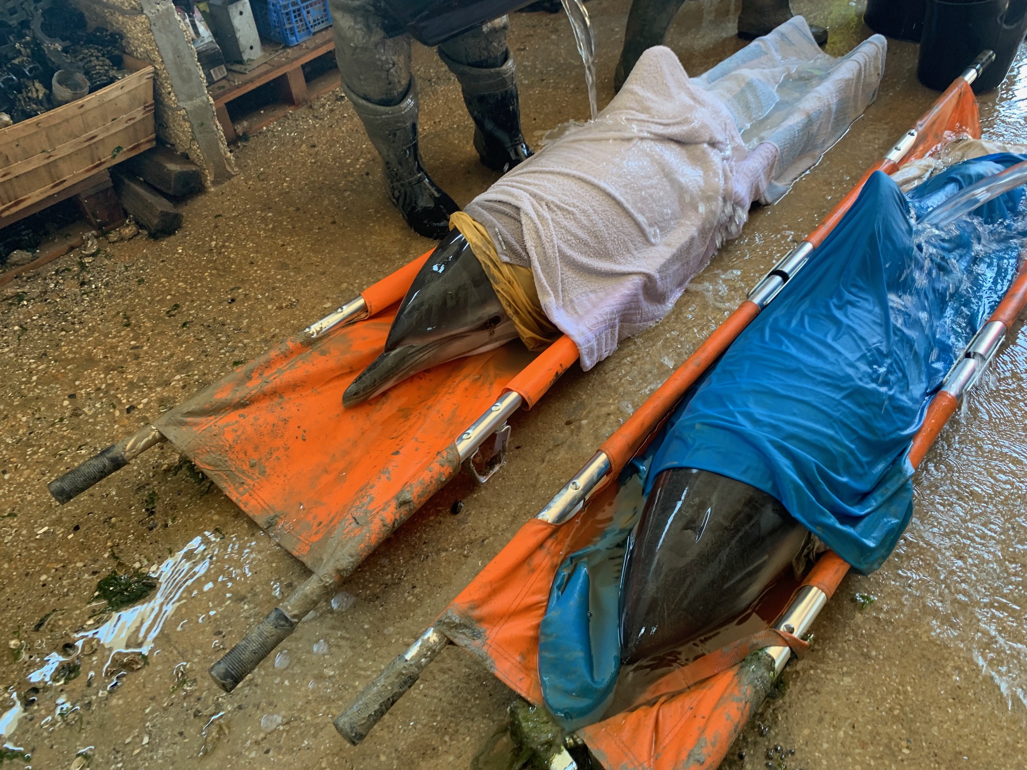 Les dauphins ont été ramenés à terre sur des brancards. (photo CdC île d’Oléron)