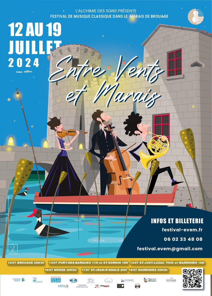 Plongez au cœur de l’été et du marais de Brouage avec le festival Entre Vents et Marais, du 12 au 19 juillet ! Ce festival de musique classique itinérant mêle harmonieusement musique classique et patrimoine. Informations et billetterie sur : festival-evem.fr. Renseignements au 06 02 33 48 08.