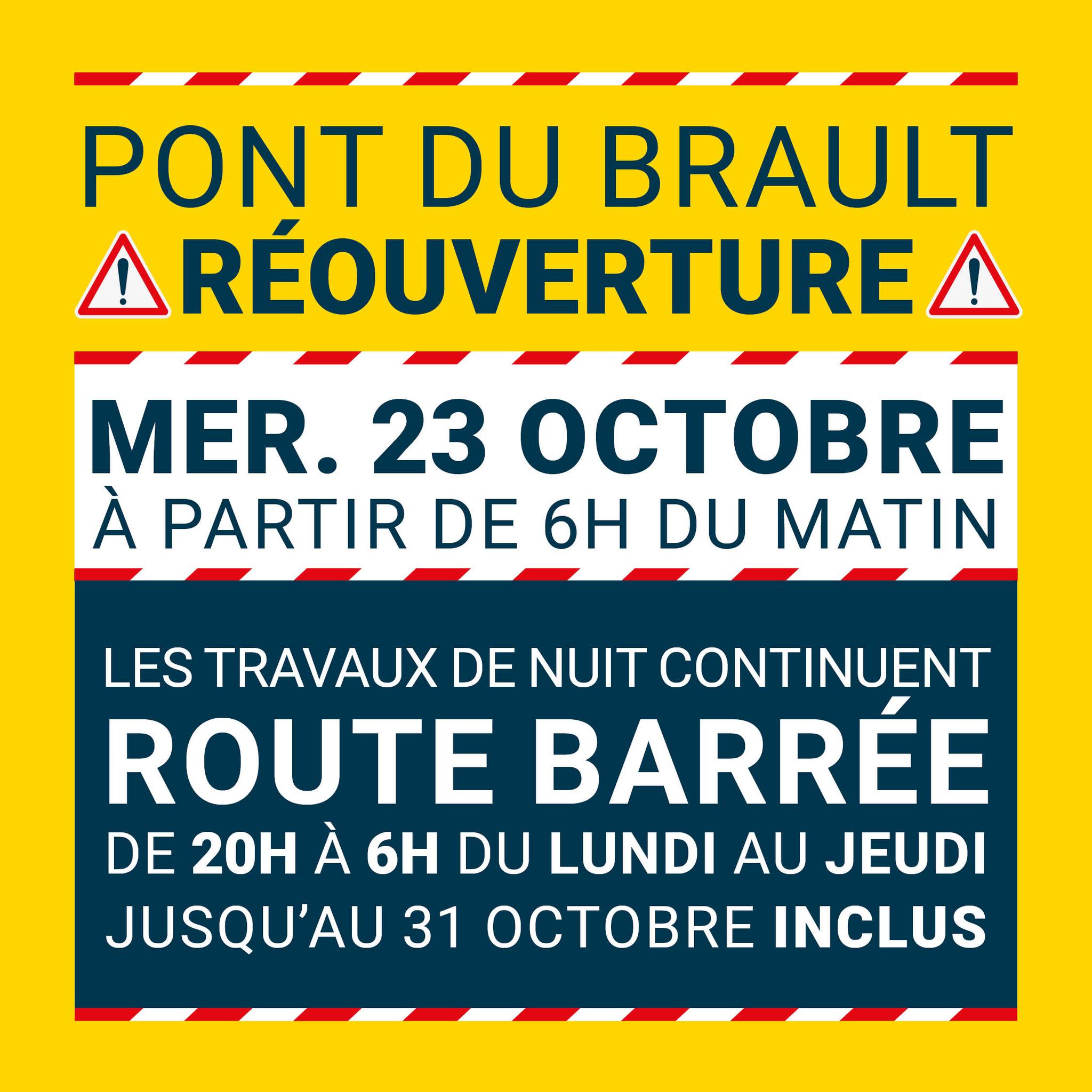 La réouverture du pont du Brault qui relie la Charente-Maritime à la Vendée est reportée. Il faudra attendre deux jours de plus avant de pouvoir de nouveau franchir l’ouvrage dont les travaux se terminent. Ces derniers ont subi un léger retard en raison des intempéries et de la pluie de ces derniers jours. Un temps sec est en effet nécessaire pour la dernière phase du chantier, notamment pour la mise en œuvre de l’étanchéité des tabliers. La circulation routière devrait donc pouvoir reprendre à partir de mercredi dès 6h du matin. Le pont du Brault est traversé en moyenne par plus de 12 000 véhicules par jour.