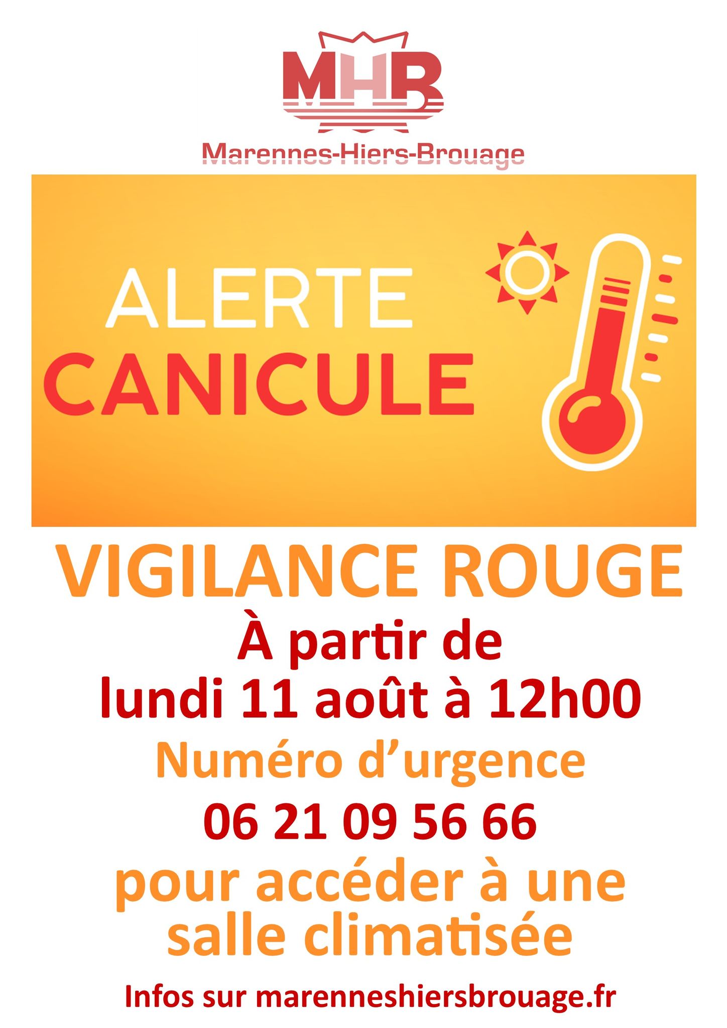 À Marennes-Hiers-Brouage, la Ville a mis en place un numéro d’urgence depuis ce midi pour accéder à une salle climatisée, c’est le 06 21 09 56 66. On écoute la maire Claude Balloteau qui nous rappelle les dispositifs mis en place :