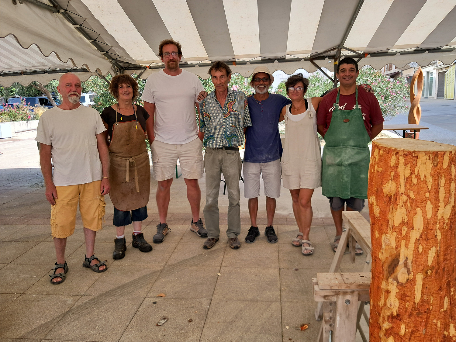 Les sept sculpteurs du Symposium 2025, dernière édition.