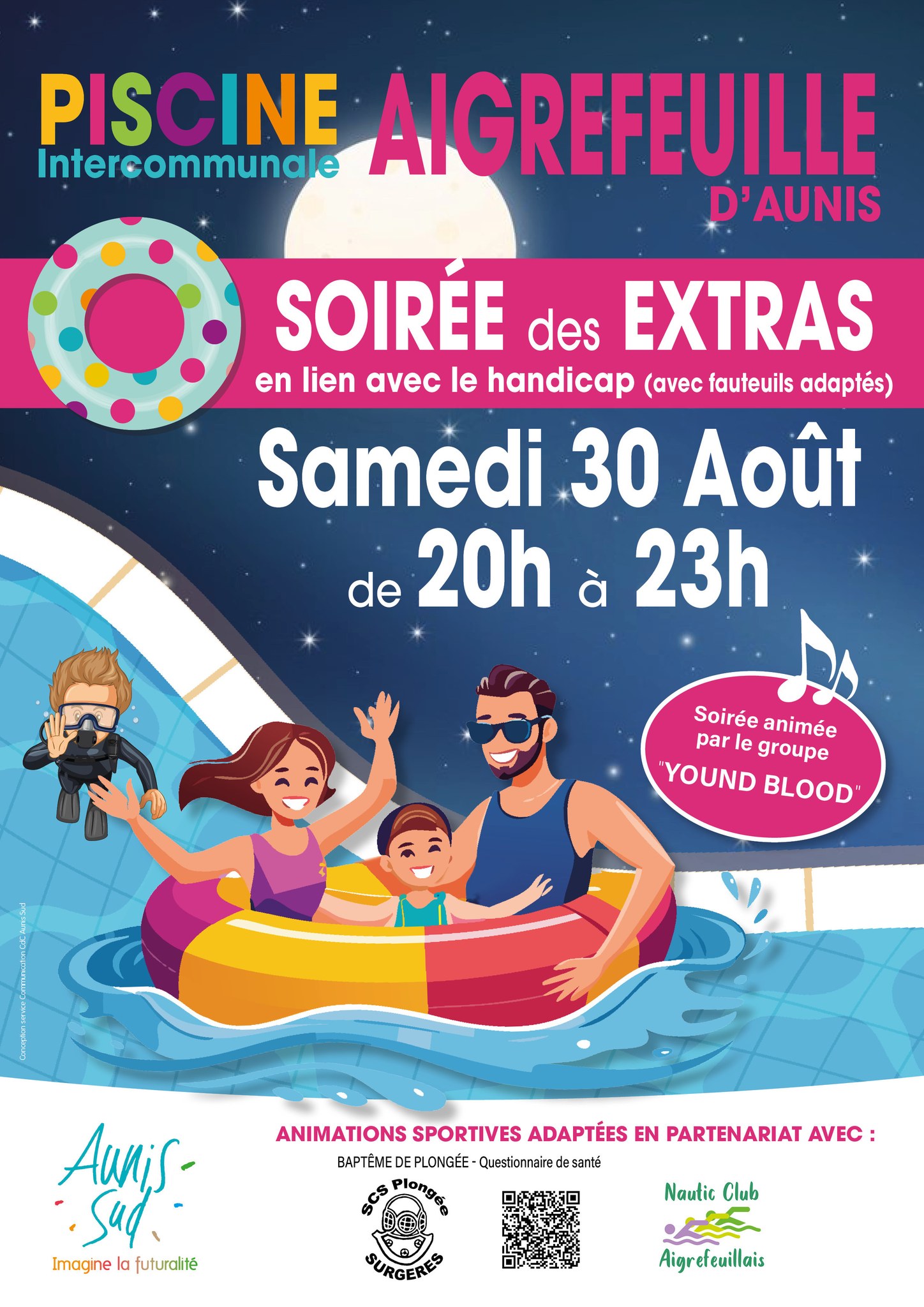 Opération inclusion demain soir à la piscine d’Aigrefeuille-d’Aunis, près de Surgères. La Communauté de communes Aunis Sud organise la Soirée des extras. Une soirée inclusive et festive pour permettre aux personnes en situation de handicap de venir se baigner et de participer à des animations sportives adaptées. Au programme : des baptêmes de plongée et des démonstrations de nage. Rendez-vous est donné de 20h à 23h.