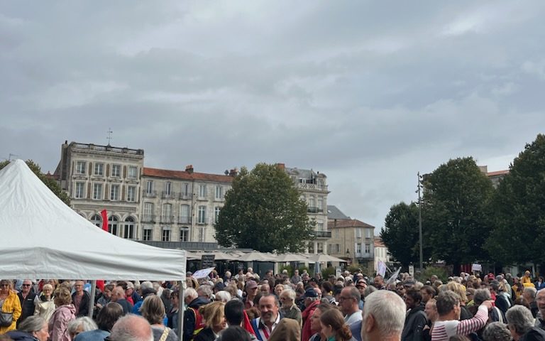 Le bilan des manifestations qui se sont déroulées hier en Charente-Maritime, dans le cadre du mouvement national « Bloquons tout ». Plusieurs actions ont été menées dans les principales villes du département. Aucun incident majeur n’a été constaté. Trois manifestants ont été interpellés : un à Saintes, et deux dans le secteur de La Rochelle. Au total, 1 500 personnes se sont mobilisées en Charente-Maritime, dont 800 à La Rochelle, 200 à Saintes et environ 500 à Rochefort. Rochefort où les manifestants ont occupé dans la matinée la place Colbert, avant un défilé en ville direction l’entreprise Airbus Atlantique. Tous ont réclamé la démission du président Emmanuel Macron. Écoutez :