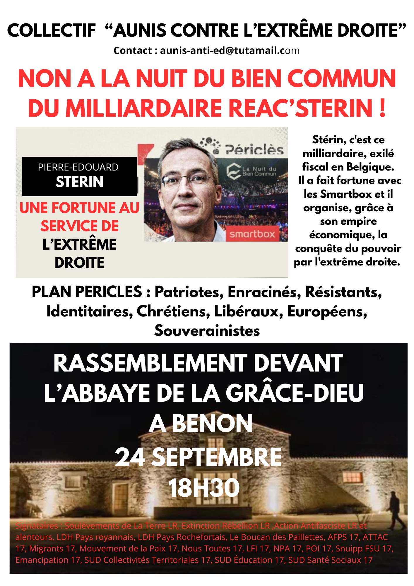 Un gala de charité dans le collimateur des parlementaires de gauche de Charente-Maritime et du collectif Aunis contre l’extrême droite. Il s’agit de « La Nuit du bien commun » qui a lieu ce soir pour la première fois en Charente-Maritime, précisément à l’abbaye de la Grâce-Dieu à Benon, entre Surgères et La Rochelle. Un évènement organisé par le milliardaire Pierre-Édouard Stérin, qui a fait fortune avec les Smartbox. Une personnalité fortement décriée par ses opposants pour son appartenance à l’extrême droite et ses méthodes douteuses pour transformer une opération caritative en outil de communication et d’influence politique.