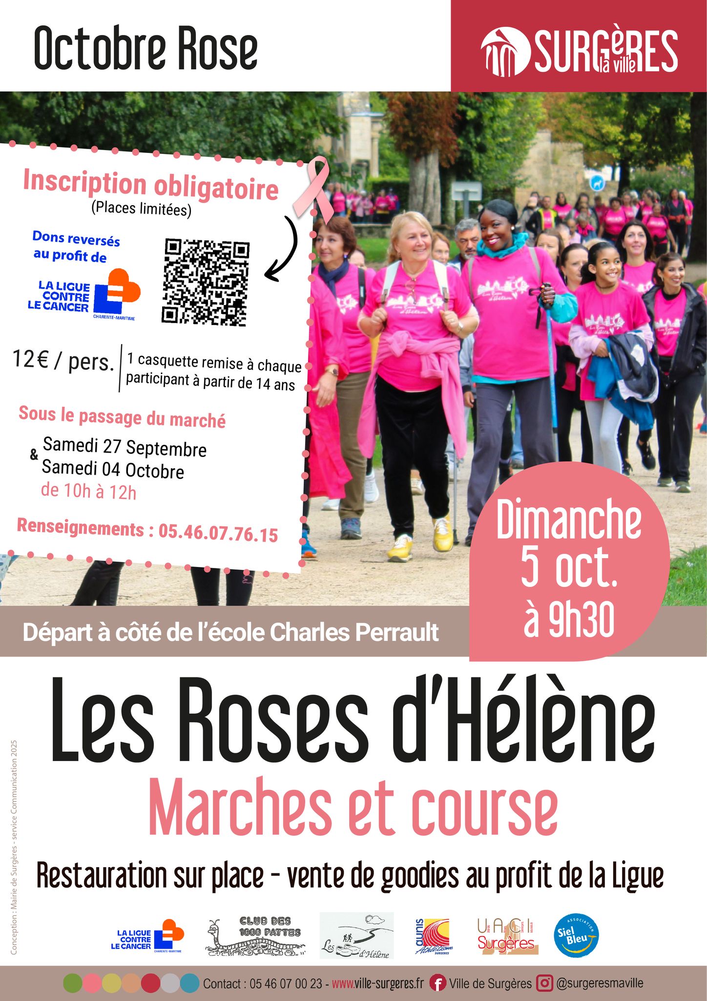 Surgères se mobilise pour Octobre rose, le mois de lutte contre le cancer du sein. La Ville organise ce dimanche la 6e édition des Roses d’Hélène. Une course pédestre de 8 km, et deux marches de 4 et 8 km. Le départ sera donné à 9h30 de l’espace Georges-Pompidou. Présentation de l’évènement avec Sylvie Plaire, adjointe au maire en charge de la vie associative et sportive :