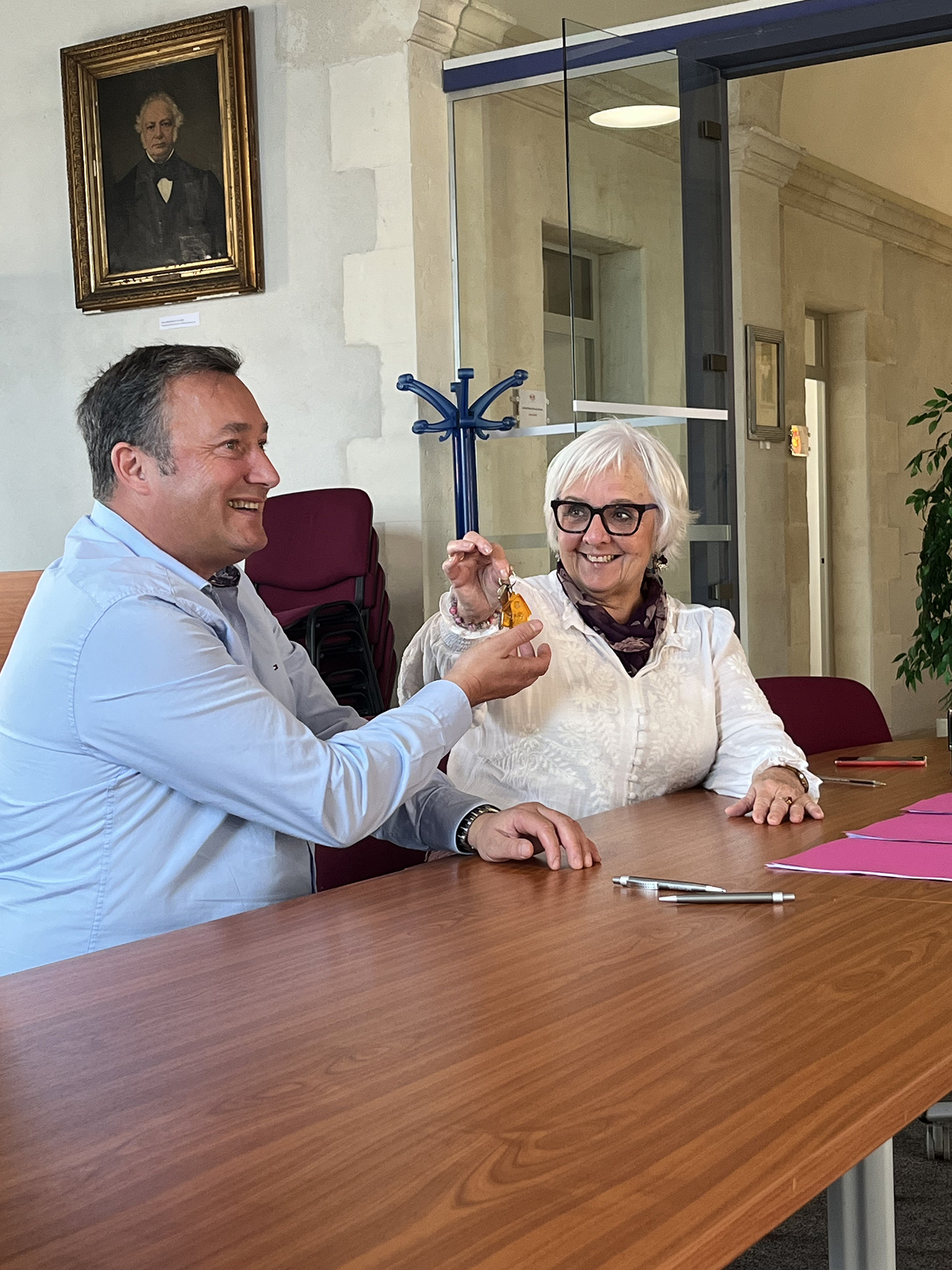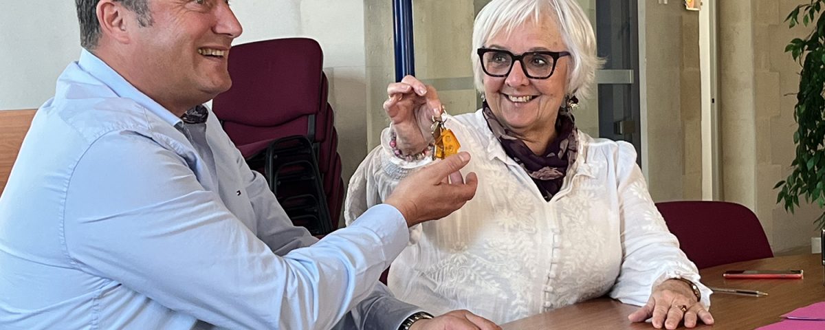 La maire Claude Balloteau remet les clés du local du 32 rue Dubois-Meynardie au gérant de l’entreprise Les Pêcheries de La Cotinière.