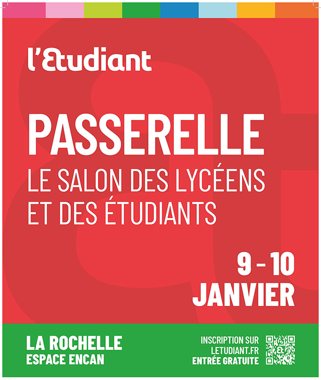 Organisé en partenariat avec la Direction des services départementaux de l’Education nationale de Charente-Maritime, la région Nouvelle-Aquitaine, la Communauté d’agglomération de la Rochelle et La Rochelle Université, le Salon Passerelle revient cette fin de semaine pour une 34e édition. Un rendez-vous incontournable de l’orientation dédié aux lycéens et aux étudiants. Plus de 6 500 visiteurs sont attendus, et plus de 120 acteurs seront mobilisés pour apporter conseils et informations. Des acteurs provenant de tous secteurs proposant des formations en cursus classique ou en alternance, seront présents. Le salon Passerelle est l’occasion d’obtenir des réponses concrètes pour préparer son projet d’orientation. Il permet de s’informer sur les possibilités de poursuite d’études post-bac et s’adresse aux lycéens dès la classe de seconde. Il permet d’échanger avec les représentants d’établissements, des étudiants, des alternants… et d’assister à des conférences organisées et animées par la rédaction du magazine l’Etudiant qui porte l’évènement.
