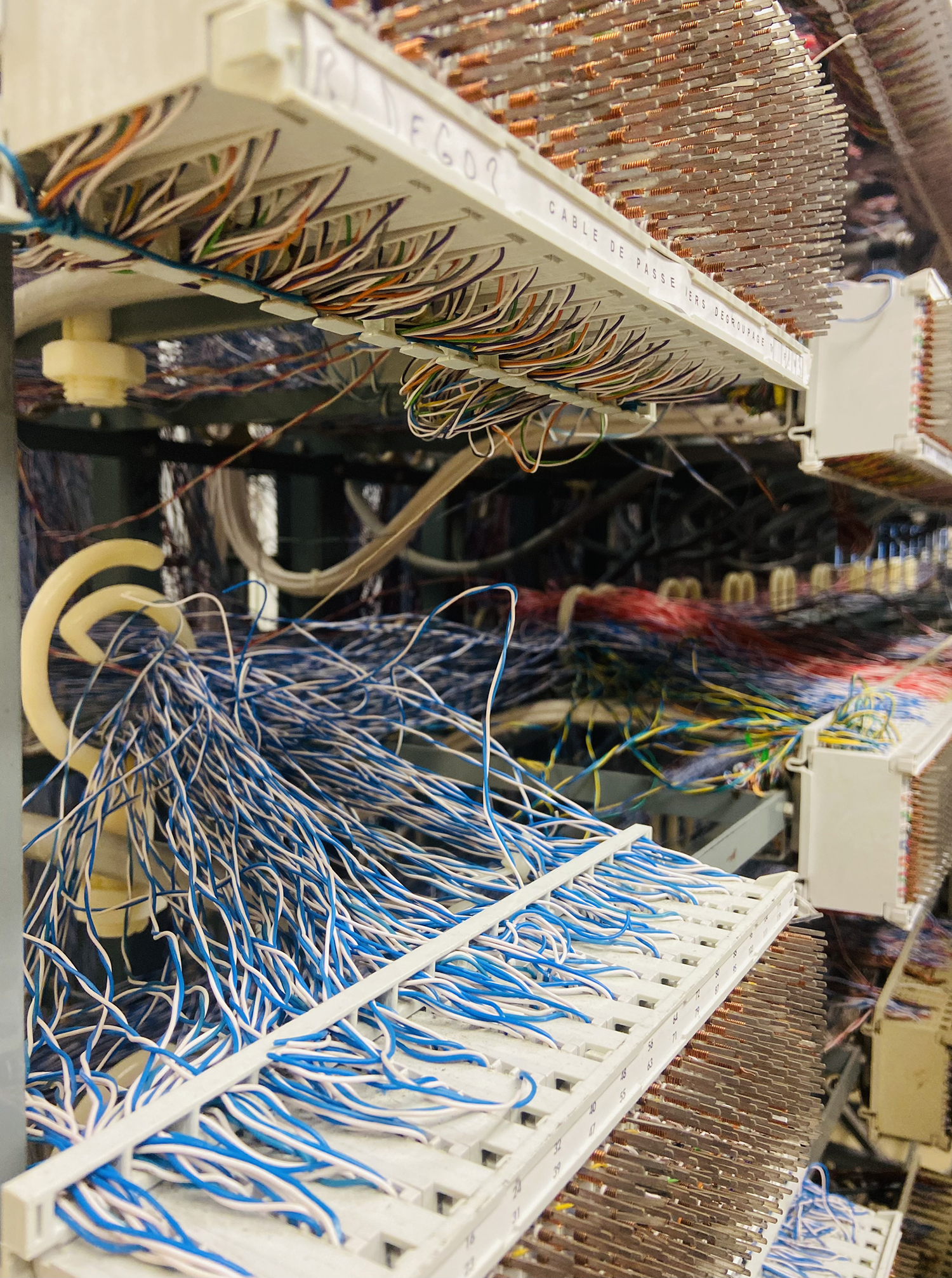 Moins sujette aux pannes, moins énergivore et nécessitant moins d’entretien, la fibre prend beaucoup moins de place dans les locaux techniques. Là où le cuivre mobilise un fil par foyer, une seule fibre peut aujourd’hui desservir jusqu’à 128 foyers, tout en offrant des débits nettement supérieurs aux usagers. Exemple au répartiteur de Marennes-Hiers-Brouage où les deux technologies cohabitent, mais pas pour très longtemps, comme le souligne Maxime Nadeau, technicien Orange :