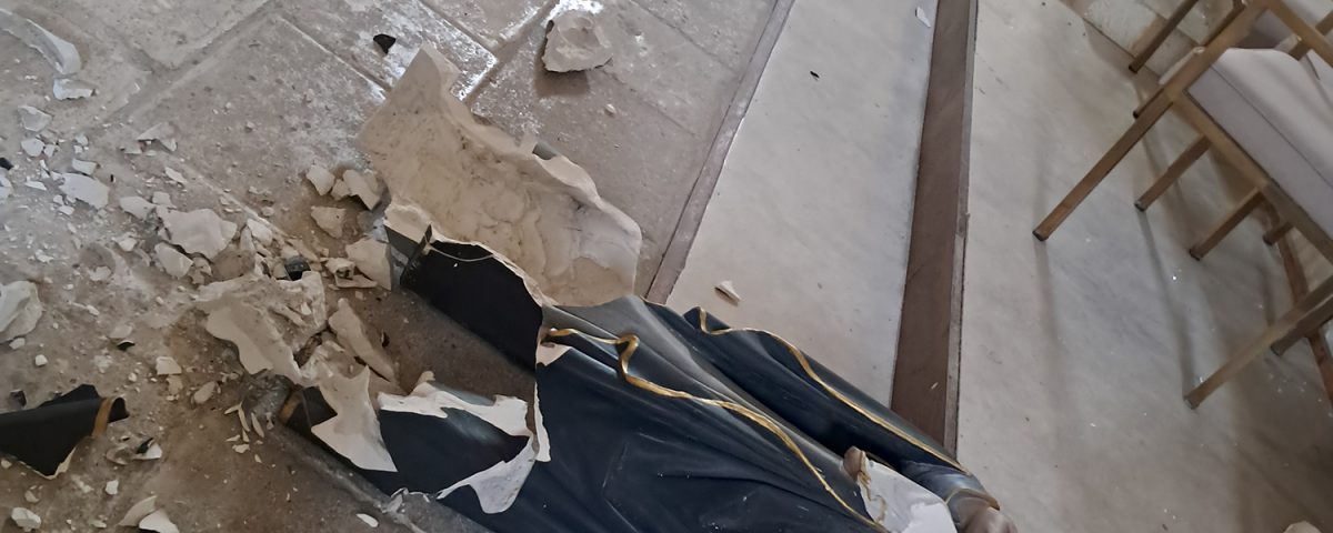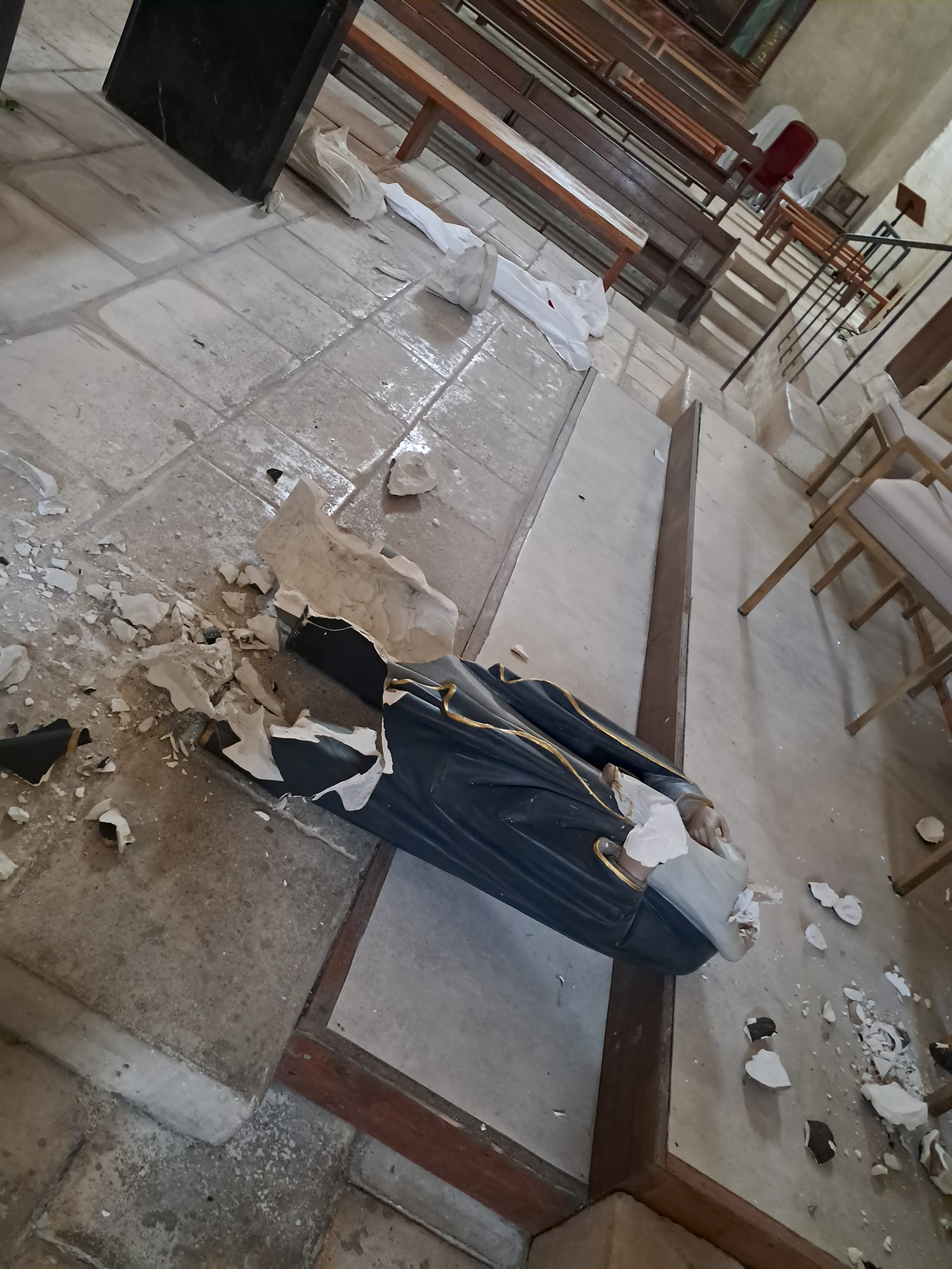 La statue de la Vierge a été retrouvée brisée au sol.