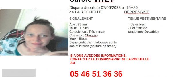 La femme de 35 ans portée disparue à La Rochelle est saine et sauve. Elle a regagné son domicile en parfaite santé selon la police nationale. Carole Vitet, qui souffre de dépression,Lire la suite…