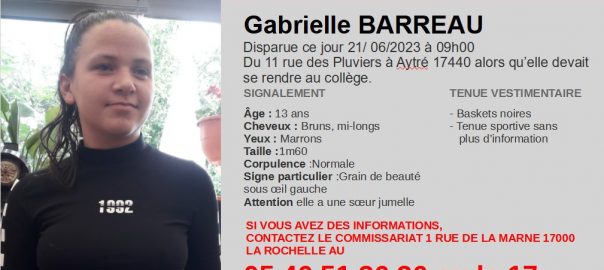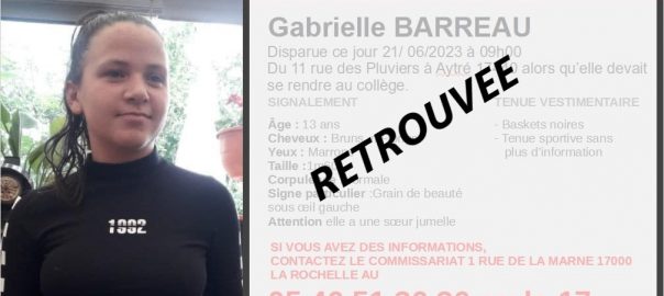 L’adolescente de 13 ans portée disparue depuis hier à Aytré, près de La Rochelle, a été retrouvé. La police avait lancé un appel à témoins après la disparition inquiétante de Gabrielle quiLire la suite…